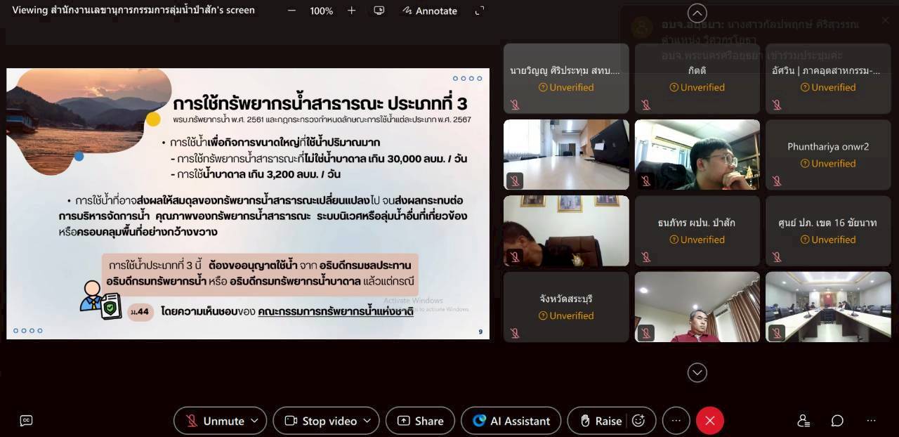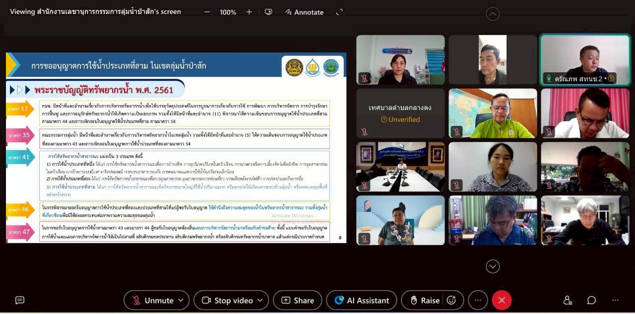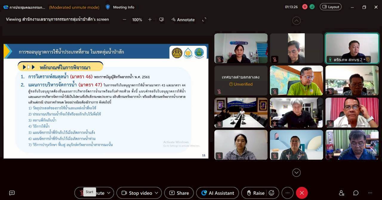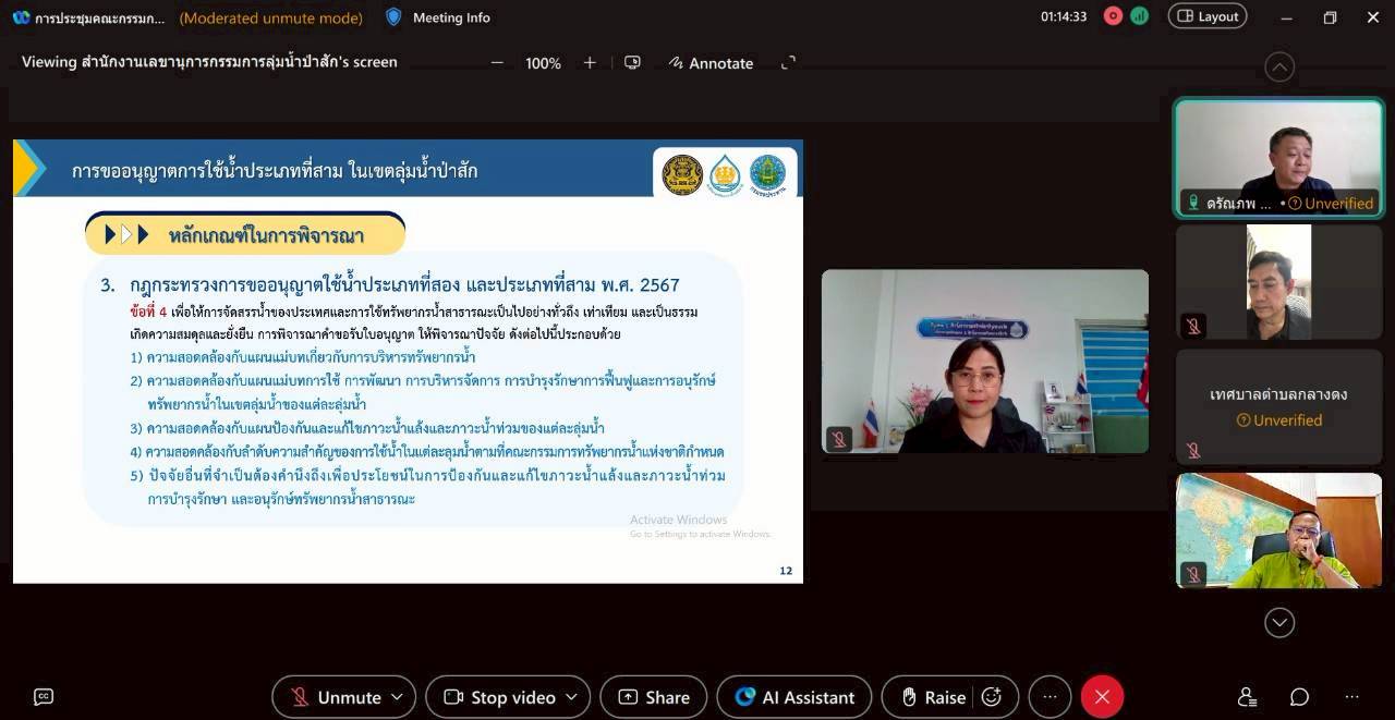 นายธวัชชัย ใบเจริญ กรรมการลุ่มน้ำผู้ทรงคุณวุฒิ เป็นประธานการประชุมคณะกรรมการลุ่มน้ำป่าสัก ครั้งที่ 3/2569 ประชุมผ่านสื่ออิเล็กทรอนิกส์ ในการนี้ อธิบดีกรมทรัพยากรน้ำ มอบหมายให้ สำนักงานทรัพยากรน้ำที่ 2 โดยนางสาวปัตตาพร จำปาทอง ผู้อำนวยการส่วนอนุรักษ์ทรัพยากรน้ำที่ 3 ลพบุรี เข้าร่วมประชุมฯ ดังกล่าว ซึ่งมีวัตถุประสงค์เพื่อพิจารณาการทบทวนแผนปฏิบัติการด้านทรัพยากรน้ำ ประจำปีงบประมาณ พ.ศ. 2570 ในเขตลุ่มน้ำป่าสัก