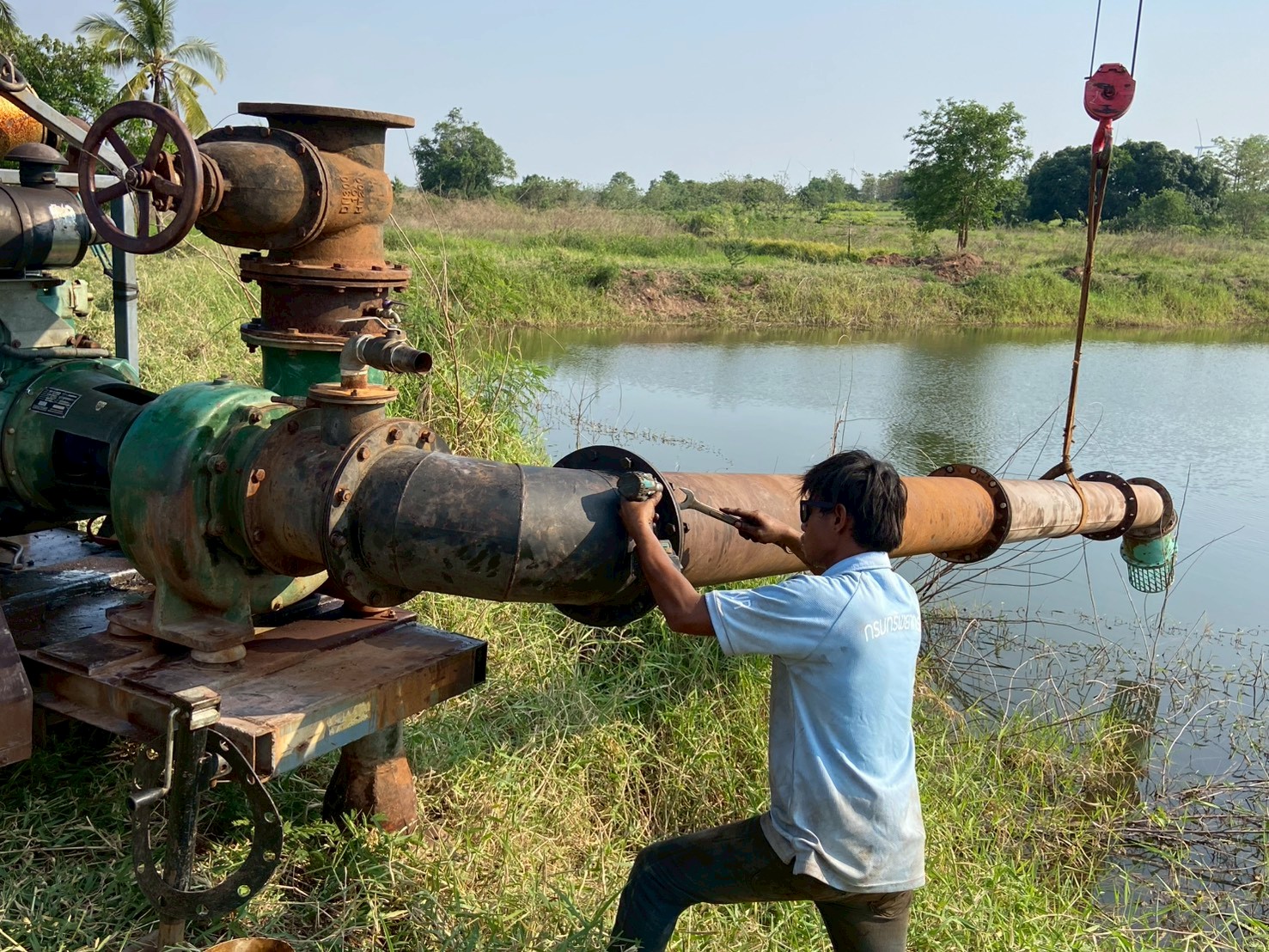 นายสุมิต สีสา ผู้อำนวยการสำนักงานทรัพยากรน้ำที่ 5 มอบหมายให้ ส่วนเครื่องกลที่ 1 นครราชสีมา ดำเนินการติดตั้งเครื่องสูบน้ำ แบบหอยโข่ง ขนาด 12 นิ้ว จำนวน 1 เครื่อง สูบจากสระสาธารณบ้านเลิศมงคล เข้าสู่สระประปาหมู่บ้าน ณ บ้านเลิศมงคล หมู่ที่ 15 ตำบลดอนเมือง อำเภอสีคิ้ว จังหวัดนครราชสีมา ตั้งแต่วันที่ 7 - 12 เมษายน 2569 ได้ปริมาณการสูบน้ำทั้งสิ้น 24,000 ลบ.ม. มีผู้ได้รับประโยชน์ 150 หลังคาเรือน ประชากร 460 คน