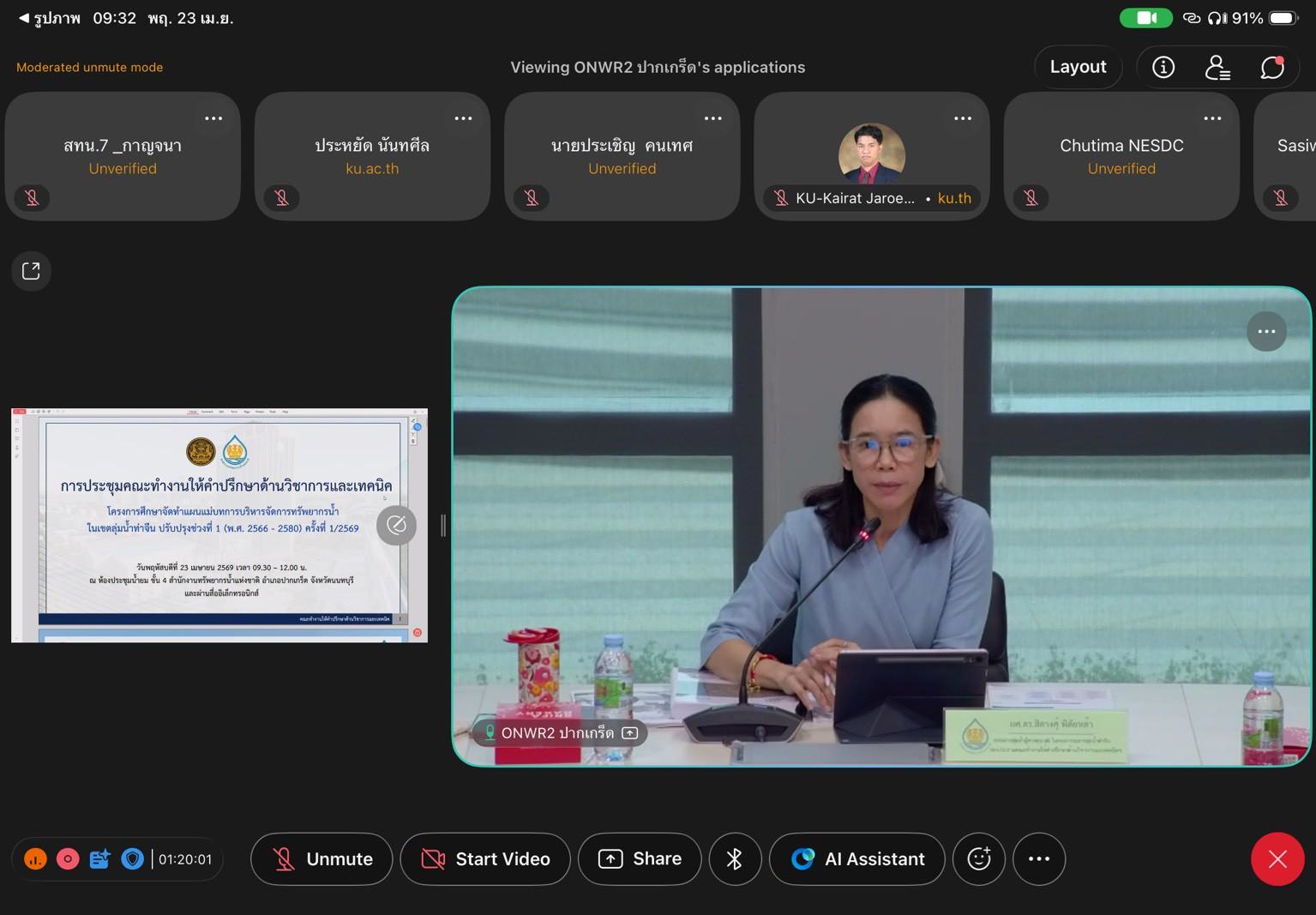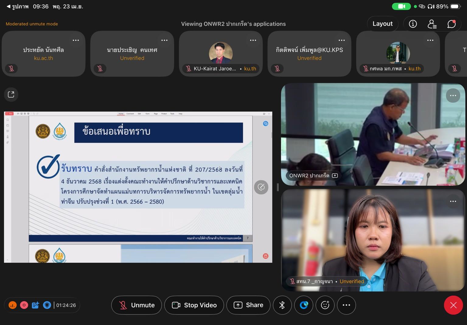 วันที่ 23 เมษายน 2569 นายอนันต์ โพธิ์พันธุ์ ผู้อำนวยการสำนักงานทรัพยากรน้ำที่ 7 มอบหมายให้ ส่วนอนุรักษ์ทรัพยากรน้ำที่ 2 สุพรรณบุรี เข้าร่วมประชุมคณะทำงานให้คำปรึกษาด้านวิชาการและเทคนิคโครงการศึกษาจัดทำแผนแม่บทการบริหารจัดการทรัพยากรน้ำในเขตลุ่มน้ำท่าจีน ปรับปรุงช่วงที่ 1 (พ.ศ.2566- 2580) ครั้งที่ 1/2569 ณ ห้องประชุมน้ำยม ชั้น 4 สำนักงานทรัพยากรน้ำแห่งชาติ อำเภอปากเกร็ด จังหวัดนนทบุรี และผ่านระบบสื่ออิเล็กทรอนิกส์ เพื่อพิจารณาให้ความเห็นต่อรายงานการเริ่มงาน (Inception Report) และพิจารณาให้ความเห็นต่อแผนการจัดประชุมปฐมนิเทศโดยมี ผศ.ดร.สิตางศ์ุ พิลัยหล้า กรรมการลุ่มน้ำผู้ทรงคุณวุฒิในคณะกรรมการลุ่มน้ำท่าจีน รองประธานคณะทำงานให้คำปรึกษาด้านวิชาการและเทคนิคฯ เป็นประธาน