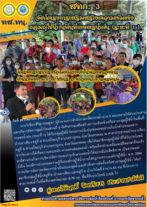 สำนักงานทรัพยากรน้ำภาค 3 จัดโครงการเสริมสร้างความเข้มแข็งกลุ่มผู้ใช้น้ำในพื้นที่เกษตรน้ำฝน (ระยะที่ 1 )