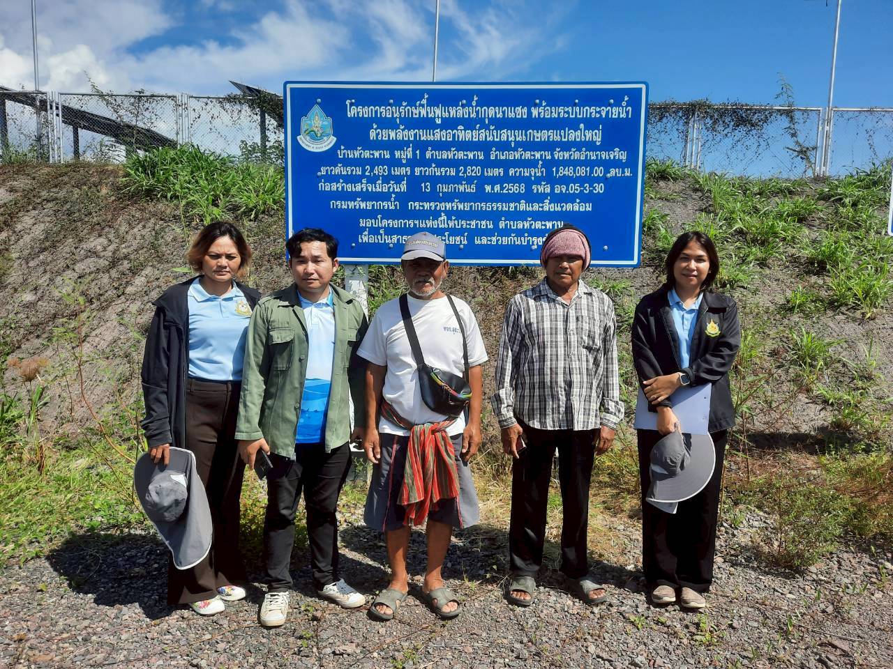 วันที่ 19 กันยายน 2568 นายโภคิน ช้ำเกตุ ผู้อำนวยการสำนักงานทรัพยากรน้ำที่ 11 มอบหมายให้เจ้าหน้าที่ส่วนอนุรักษ์ทรัพยากรน้ำ ลงพื้นที่จังหวัดอำนาจเจริญติดตาม ผลการดำเนินงานกลุ่มผู้ใช้น้ำ โครงการอนุรักษ์ฟื้นฟูแหล่งน้ำกุดนาแซง พร้อมระบบ กระจายน้ำด้วยพลังงานแสงอาทิตย์สนับสนุนเกษตรแปลงใหญ่ บ้านหัวตะพาน ตำบลหัวตะพาน อำเภอหัวตะพาน จังหวัดอำนาจเจริญ โดยมีผู้นำชุมชน และชาวบ้านในพื้นที่ ให้การสนับสนุนข้อมูลโครงการฯ เพื่อดำเนินงานการบริหารจัดการน้ำ อย่างมีส่วนร่วม ยั่งยืน และการผลักดันสู่องค์กรใช้น้ำ (เครือข่ายเดิม) ในปีงบประมาณ พ.ศ. 2569 ต่อไป