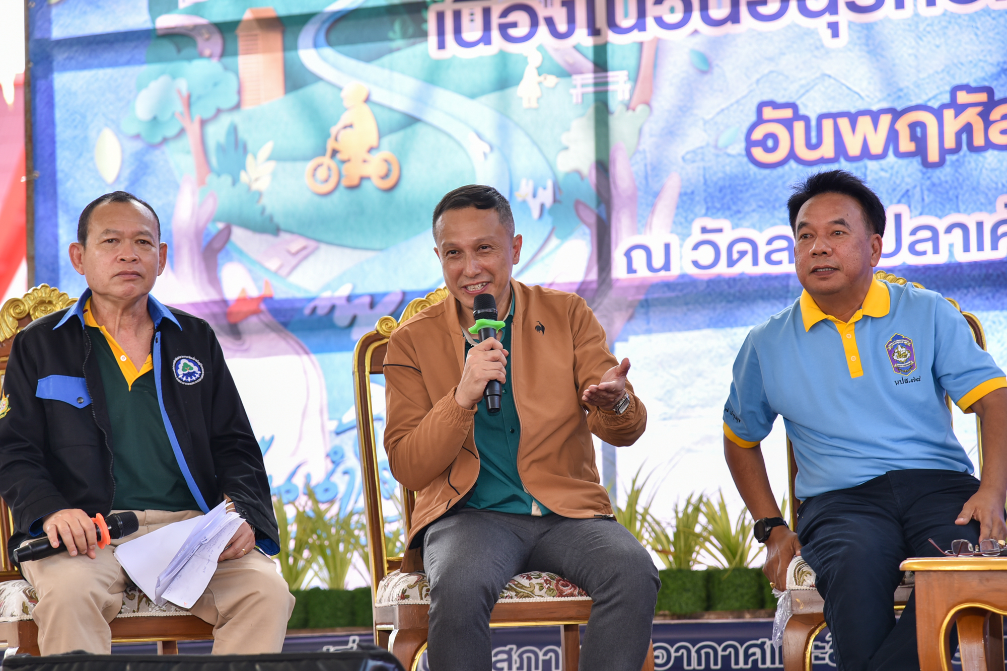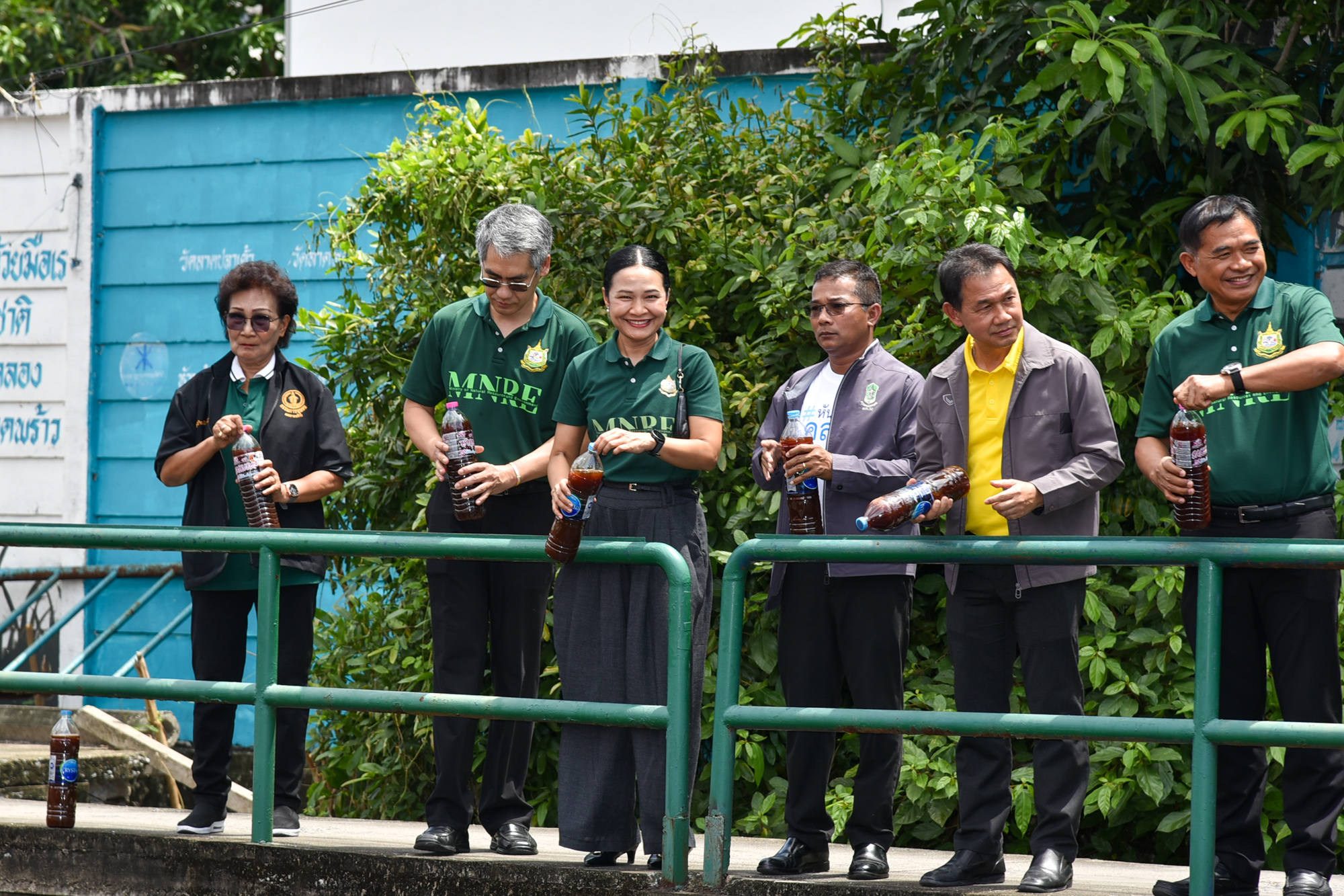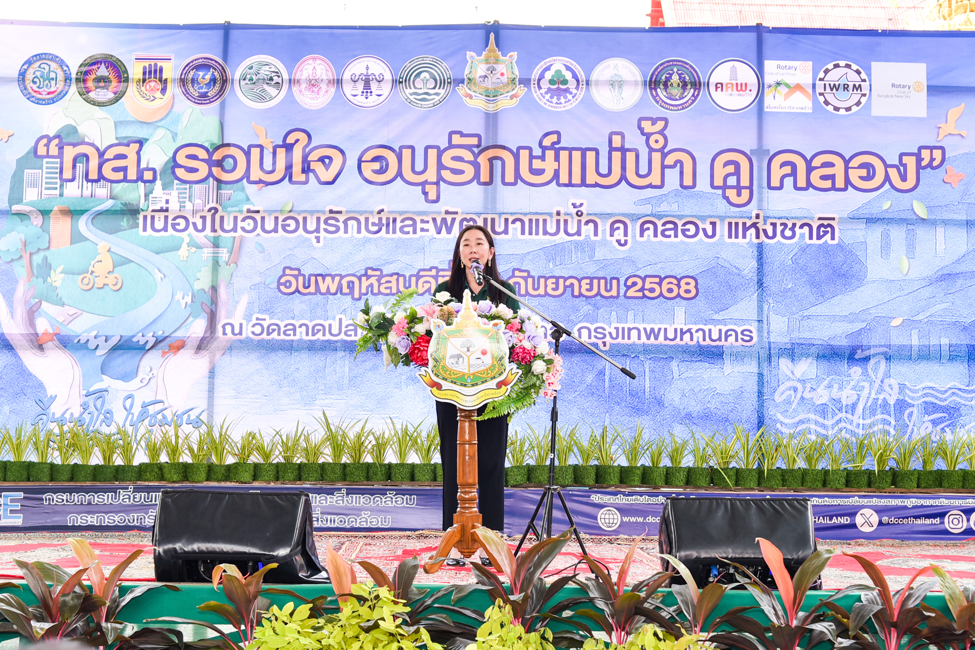 วันนี้ (25 กันยายน 2568) ดร.ชญานันท์ ภักดีจิตต์ ปลัดกระทรวงทรัพยากรธรรมชาติและสิ่งแวดล้อม เป็นประธานเปิดกิจกรรม "ทส.รวมใจ อนุรักษ์แม่น้ำ คู คลอง" เนื่องในสัปดาห์วันอนุรักษ์และพัฒนาแม่น้ำ คู คลอง แห่งชาติ 20 กันยายน 2568 โดยมีผู้บริหารสังกัดกระทรวงฯ นายธีระชุณ บุญสิทธิ์ อธิบดีกรมทรัพยากรน้ำ พร้อมด้วยผู้บริหารและเจ้าหน้าที่กรมฯ ตลอดจนภาคีเครือข่าย นักเรียน นักศึกษา เข้าร่วมกิจกรรม ณ วัดลาดปลาเค้า กรุงเทพฯ
