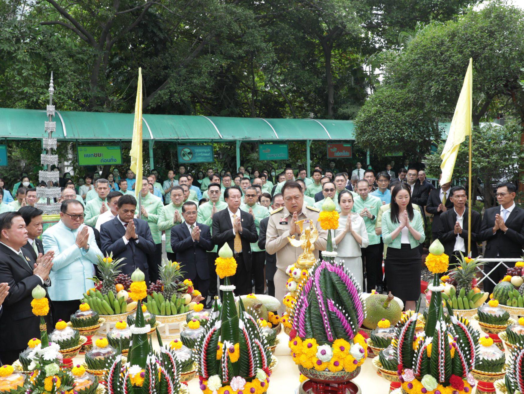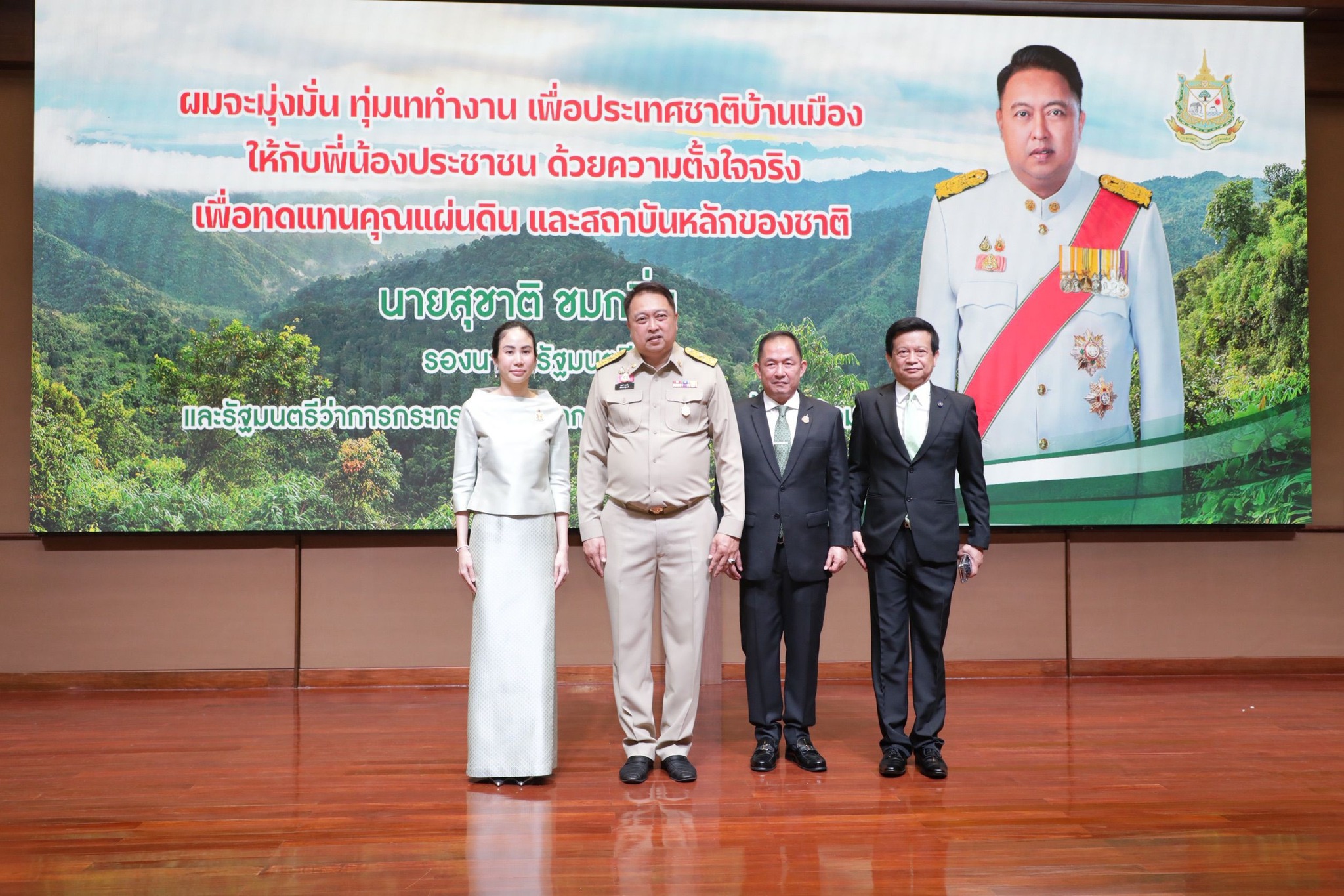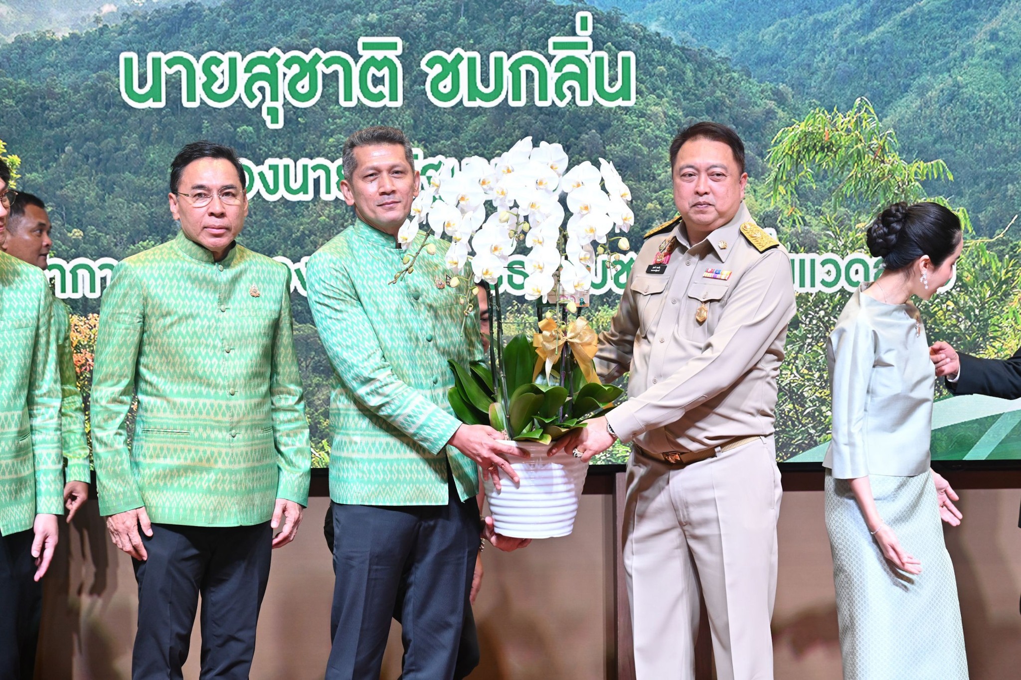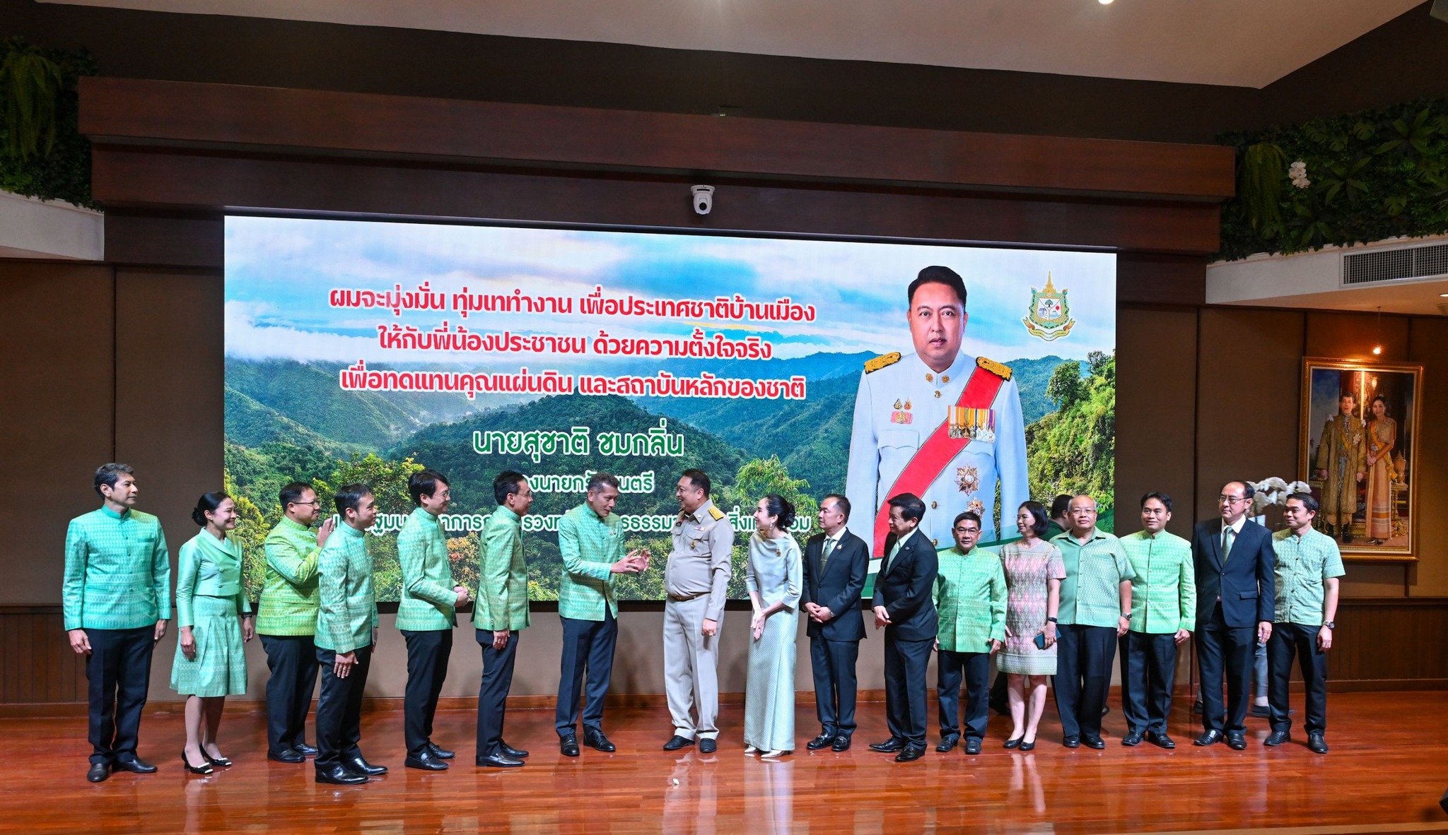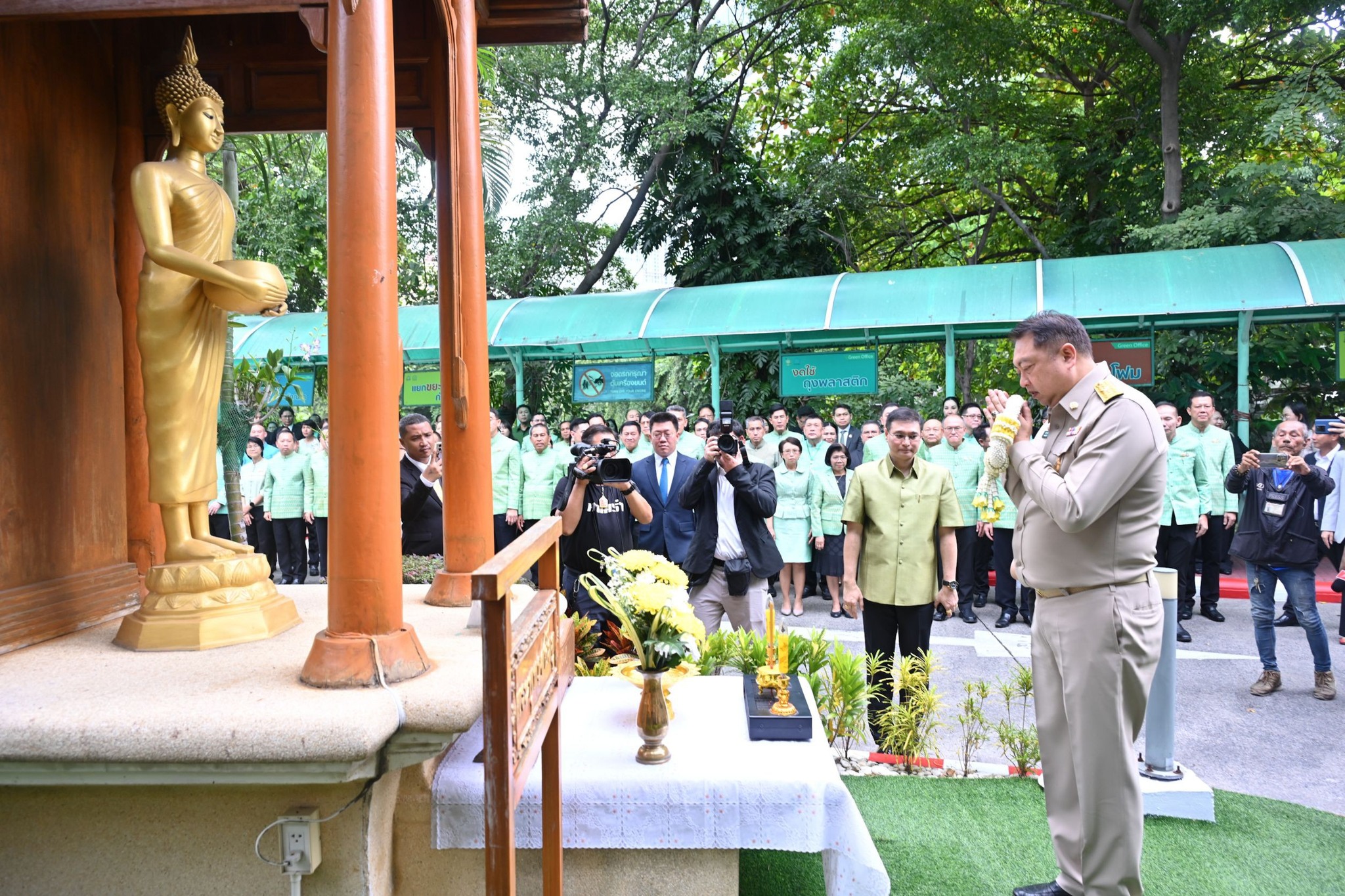 วันนี้ (26 กันยายน 2568) นายสุชาติ ชมกลิ่น รองนายกรัฐมนตรีและรัฐมนตรีว่าการกระทรวงทรัพยากรธรรมชาติและสิ่งแวดล้อม เข้าสักการะพระพุทธสยัมภู พระภูมิเจ้าที่ สิ่งศักดิ์สิทธิ์ประจำกระทรวงฯ พร้อมถวายความเคารพพระบรมฉายาลักษณ์ พระบาทสมเด็จพระเจ้าอยู่หัว รัชกาลที่ 10 และพระบรมฉายาลักษณ์ พระบาทสมเด็จพระปรเมนทรมหาอานันทมหิดล พระอัฐมรามาธิบดินทร รัชกาลที่ 8 ในวันปฎิบัติหน้าที่ที่กระทรวงทรัพยากรธรรมชาติและสิ่งแวดล้อมเป็นวันแรก โดยมี ดร.ชญานันท์ ภักดีจิตต์ ปลัดกระทรวงฯ กล่าวต้อนรับ พร้อมด้วยคณะผู้บริหารในสังกัดกระทรวงฯ นายธีระชุณ บุญสิทธิ์ อธิบดีกรมทรัพยากรน้ำ เข้าร่วมต้อนรับและมอบแจกันดอกไม้ ณ ห้องประชุมศักดิ์สิทธิ์ ตรีเดช ชั้น 2 กระทรวงทรัพยากรธรรมชาติและสิ่งแวดล้อม