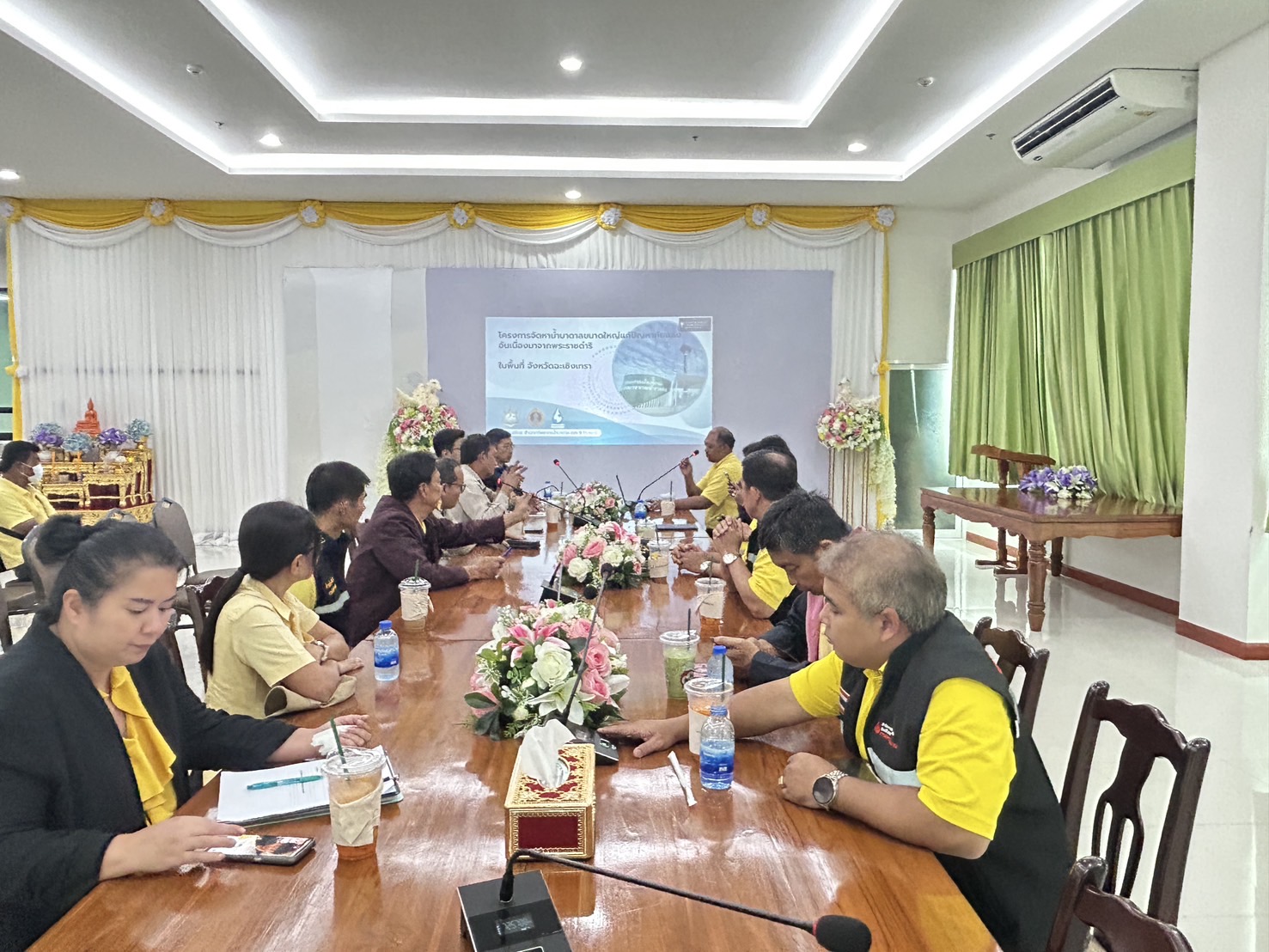 วันนี้ 8 กันยายน 2568 นายสิทธิพงษ์ โกวพัฒนกิจ ผู้อำนวยการสำนักงานทรัพยากรน้ำที่ 6 มอบหมายให้นายณัฐชาคร อมรกุล ผู้อำนวยการส่วนอนุรักษ์ทรัพยากรน้ำที่ 2 ฉะเชิงเทรา และนายสมหมาย ขันตี ผู้อำนวยการส่วนอุทกวิทยา เข้าร่วมประชุมและลงพื้นที่สำรวจสภาพโครงการ ปัญหา ความต้องการ และโครงการที่ต้องการขอรับการสนับสนุนในการขับเคลื่อนโครงการอันเนื่องมาจากพระราชดำริในพื้นที่จังหวัดฉะเชิงเทรา โดยมีวัตถุประสงค์เพื่อสำรวจสภาพโครงการ ปัญหา ความต้องการและโครงการที่ต้องการขอรับการสนับสนุน ในการขับเคลื่อนโครงการอันเนื่องมาจากพระราชดำริในพื้นที่จังหวัดฉะเชิงเทรา เพื่อนำเสนอต่อคณะกรรมการประสานงานการขับเคลื่อนและขยายผลโครงการอันเนื่องมาจากพระราชดำริ และหลักปรัชญาของเศรษฐกิจพอเพียง จังหวัดฉะเชิงเทรา