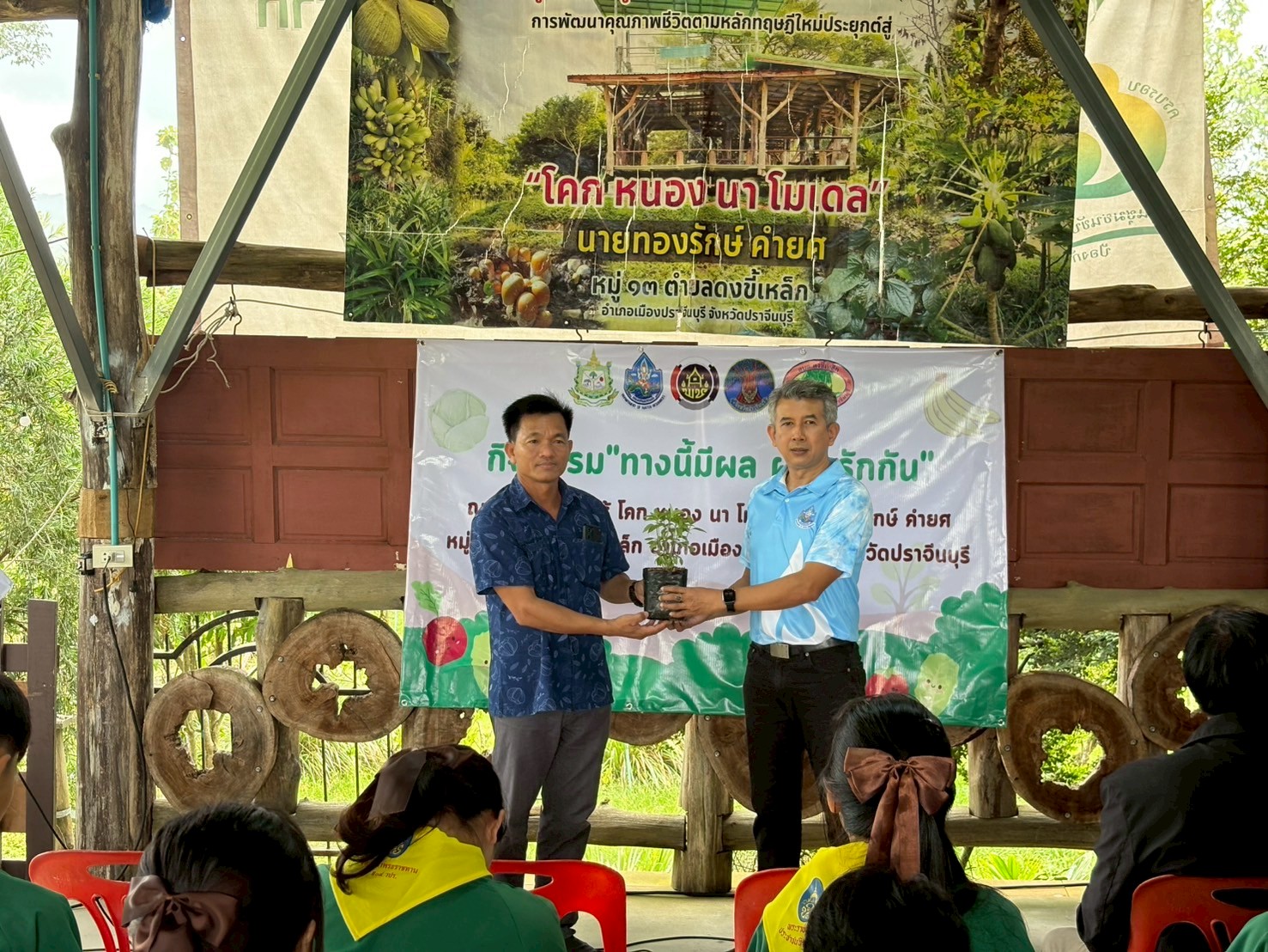 วันอังคารที่ 9 กันยายน 2568 นายสิทธิพงษ์ โกวพัฒนกิจ ผู้อำนวยการสำนักงานทรัพยากรน้ำที่ 6 มอบหมายให้ส่วนอนุรักษ์ทรัพยากรน้ำที่ 1 ปราจีนบุรี เข้าร่วมกิจกรรม “ทางนี้มีผล ผู้คนรักกัน” ร่วมกับเครือข่ายกลุ่มผู้ใช้น้ำโครงการอนุรักษ์ฟื้นฟูอ่างเก็บน้ำคลองฟันปลา พร้อมระบบกระจายน้ำ หมู่ที่ 13 ตำบลดงขี้เหล็ก ณ ศูนย์การเรียนรู้โคกหนองนาโมเดล หมู่ที่ 13 ตำบลดงขี้เหล็ก อำเภอเมืองปราจีนบุรี จังหวัดปราจีนบุรี โดยมีผู้เข้าร่วมกิจกรรม ประกอบด้วย สำนักงานพัฒนาชุมชนจังหวัดปราจีนบุรี เจ้าหน้าที่องค์การบริหารส่วนตำบลดงขี้เหล็ก คุณครูและนักเรียน โรงเรียนไทยรัฐวิทยา 7 กำนัน ผู้นำชุมชนและประชาชนในพื้นที่ ร่วมทำจิตอาสาปลูกพันธุ์ผักสวนครัวในพื้นที่ชุมชน