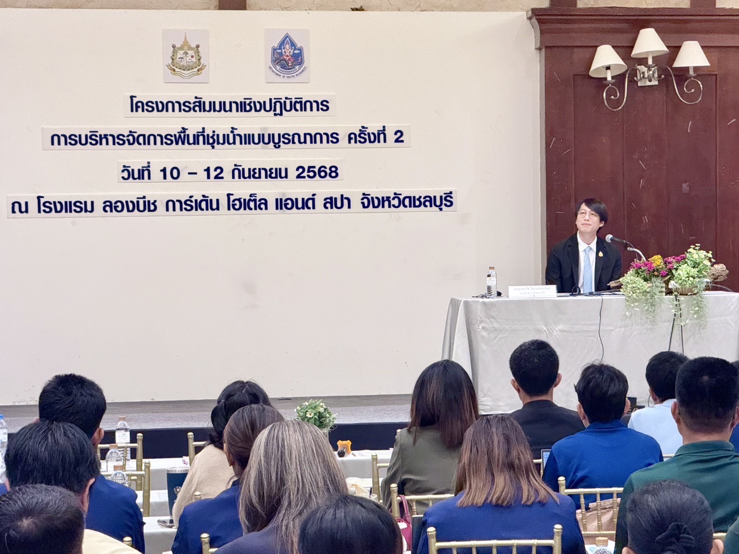 วันพุธที่ 10 กันยายน 2568 นายเวสารัช โสภณดิเรกรัตน์ รองอธิบดีกรมทรัพยากรน้ำ เป็นประธานเปิดโครงการสัมมนาเชิงปฏิบัติการการบริหารจัดการพื้นที่ชุ่มน้ำแบบบูรณาการ ครั้งที่ 2 ณ โรงแรมลองบีช การ์เด้น แอนด์ สปา อำเภอบางละมุง จังหวัดชลบุรี ในการนี้ นายสิทธิพงษ์ โกวพัฒนกิจ ผู้อำนวยการสำนักงานทรัพยากรน้ำที่ 6 พร้อมดัวย ผู้อำนวยการส่วนอนุรักษ์ทรัพยากรน้ำที่ 1-4 และเจ้าหน้าที่ เข้าร่วมโครงการมีวัตถุประสงค์เพื่อให้ทราบแนวทางการดำเนินงานด้านการอนุรักษ์ ฟื้นฟูและพัฒนาพื้นที่ชุ่มน้ำในการเพิ่มประสิทธิภาพทักษะการทำงานของเจ้าหน้าที่ และเพื่อให้ส่วนอนุรักษ์ทรัพยากรน้ำ ได้นำเสนอผลการดำเนินงานภายใต้การบริหารจัดการอนุรักษ์ฟื้นฟู การพัฒนาทรัพยากรน้ำสาธารณะและพื้นที่ชุ่มน้ำ พร้อมทั้ง ร่วมกันแลกเปลี่ยนประเด็นปัญหา ระหว่างส่วนอนุรักษ์ทรัพยากรน้ำทั้ง 30 ส่วน