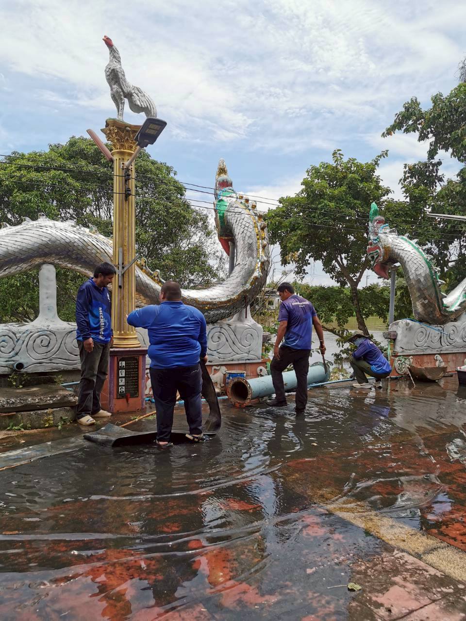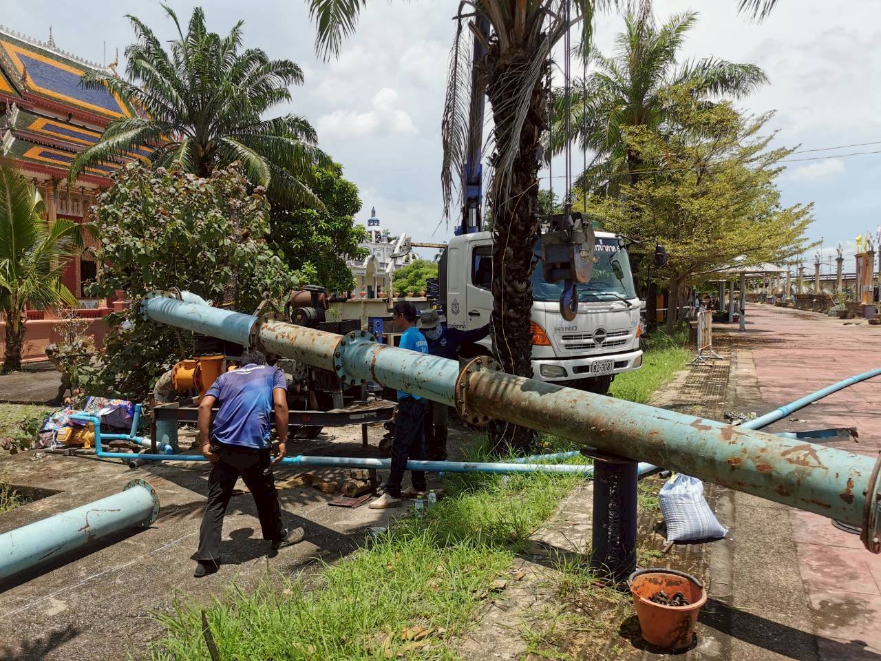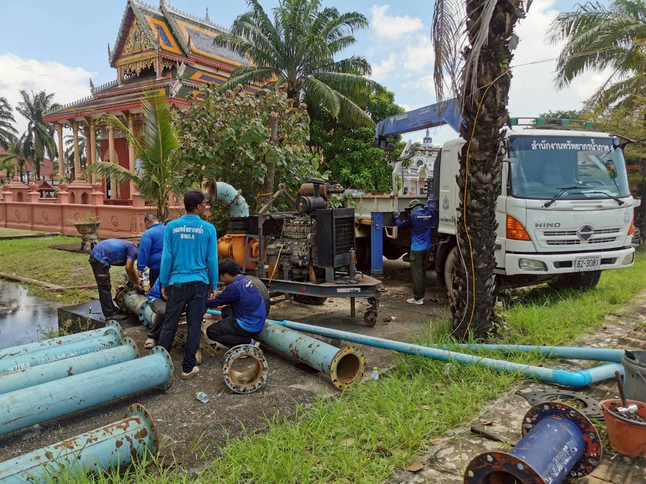 วันที่ 11-12 กันยายน 2568 นายสิทธพงษ์ โกวพัฒนกิจ ผู้อำนวยการสำงานทรัพยากรน้ำที่ 6 มอบหมายให้เจ้าหน้าที่ส่วนเครื่องกล เข้าดำเนินการติดตั้งเครื่องสูบน้ำ ขนาด 10 นิ้ว จำนวน 1 เครื่อง บริเวณวัดแก้วพิจิตร พระอารามหลวง ตำบลหน้าเมือง อำเภอเมือง จังหวัดปราจีนบุรี เพื่อสูบระบายน้ำท่วมขัง จากกรณีฝนตกหนักไม่สามารถระบายน้ำได้ รวมทั้งน้ำรั่วซึมเข้าจากแม่น้ำปราจีน ที่มีระดับน้ำที่สูงกว่าด้านในบริเวณวัด (ตามคำร้องขอของวัดแก้วพิจิตร พระอารามหลวง)