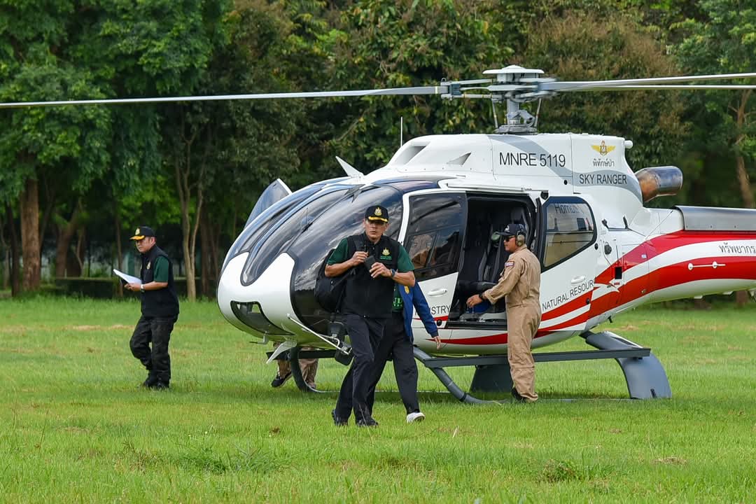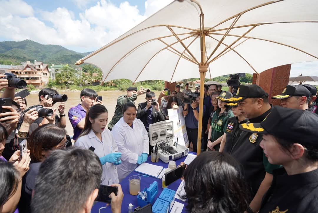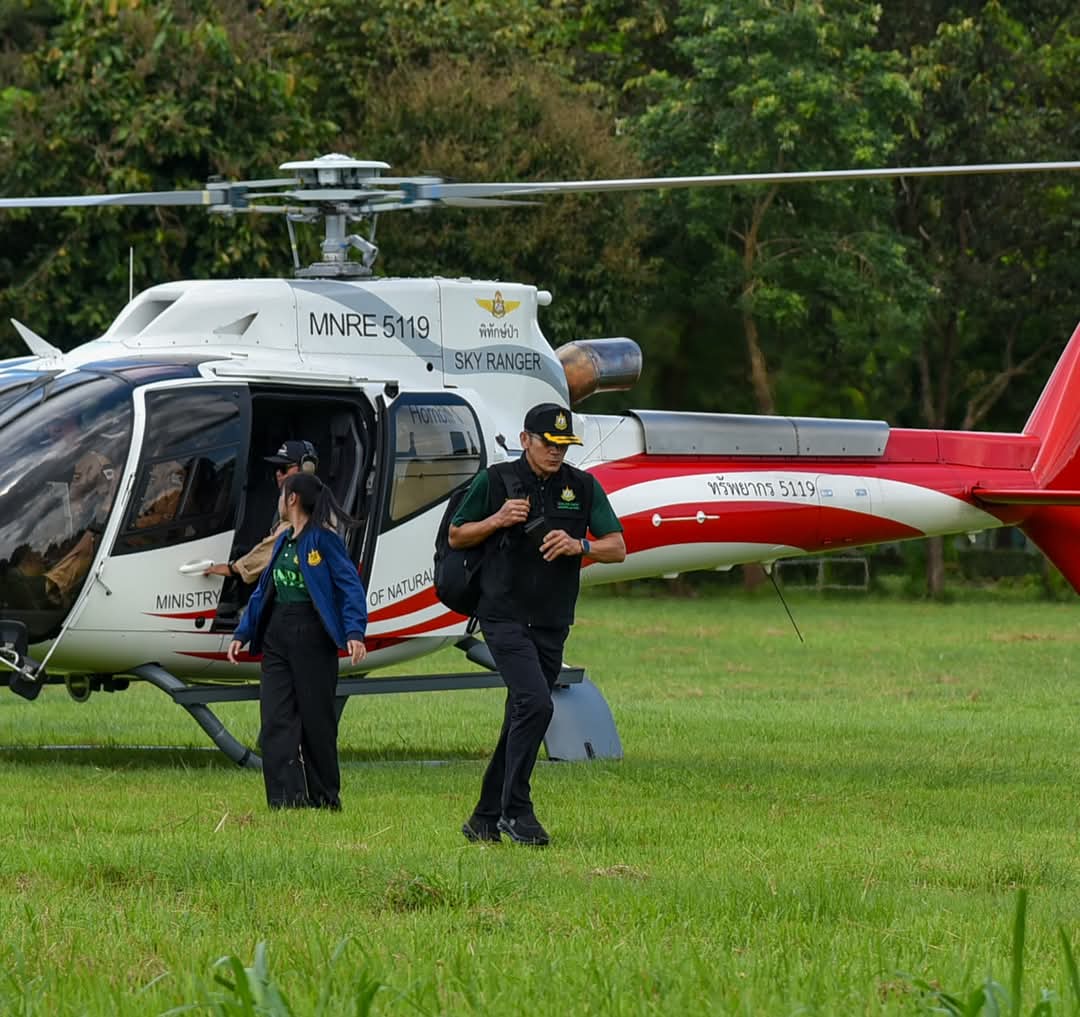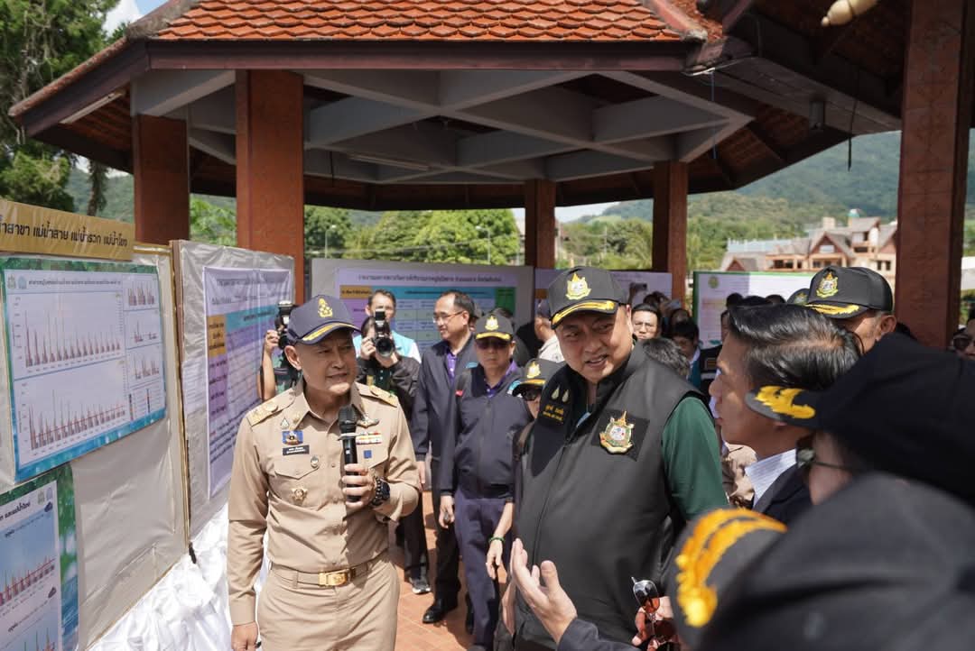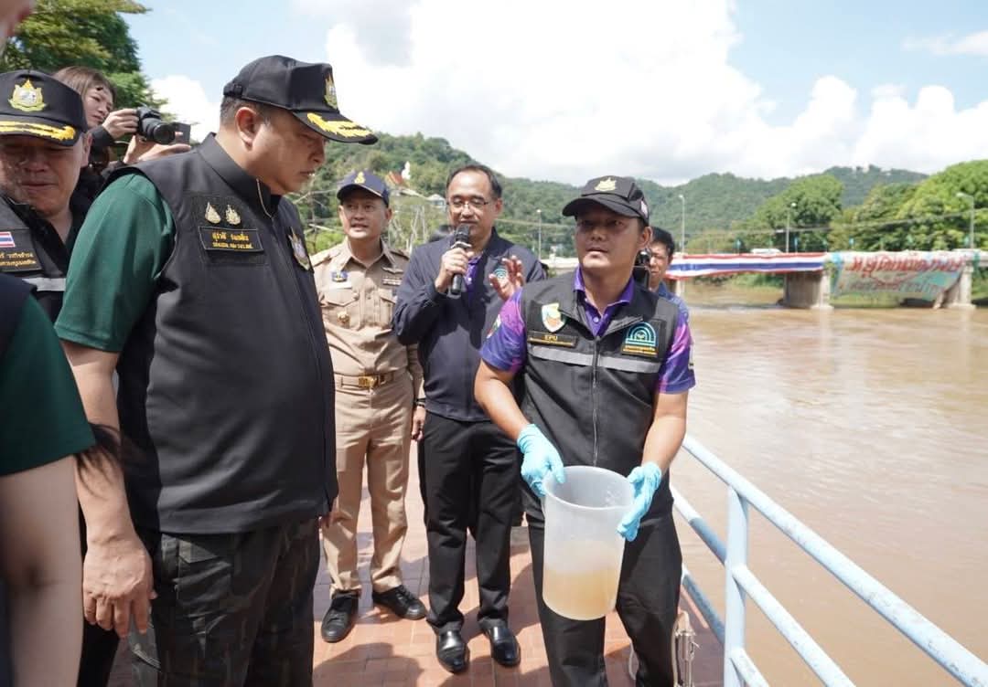 วันนี้ (9 ตุลาคม 2568) นายสุชาติ ชมกลิ่น รองนายกรัฐมนตรีและรัฐมนตรีว่าการกระทรวงทรัพยากรธรรมชาติและสิ่งแวดล้อม พร้อมด้วยดร.ชญานันท์ ภักดีจิตต์ ปลัดกระทรวงฯ นำคณะผู้บริหารในสังกัดกระทรวงฯ และ นายธีระชุณ บุญสิทธิ์ อธิบดีกรมทรัพยากรน้ำ ลงพื้นที่จังหวัดเชียงใหม่เพื่อติดตามสถานการณ์ปัญหาแม่น้ำกก โดยมีผู้ว่าราชการจังหวัดเชียงใหม่ ผู้บริหารสำนักงานทรัพยากรน้ำที่ 1 และเจ้าหน้าที่หน่วยงานที่เกี่ยวข้องร่วมรายงานสถานการณ์และรายงานการดำเนินงานการแก้ไขปัญหาตามภารกิจที่รับผิดชอบ รวมถึงรับฟังความคิดเห็นจากผู้นำชุมชน เกษตรกร กลุ่มประมงน้ำจืด ผู้ประกอบด้านการท่องเที่ยว และประชาชนในพื้นที่ ณ ศาลาท่าเรือสาธารณะบ้านท่าตอน อำเภอแม่อาย จังหวัดเชียงใหม่ ในการนี้ รมว.ทส. และคณะผู้บริหาร ขึ้นเฮลิคอปเตอร์สำรวจสภาพปัญหาแม่น้ำกกจากมุมสูง ในพื้นที่จังหวัดเชียงใหม่และจังหวัดเชียงราย