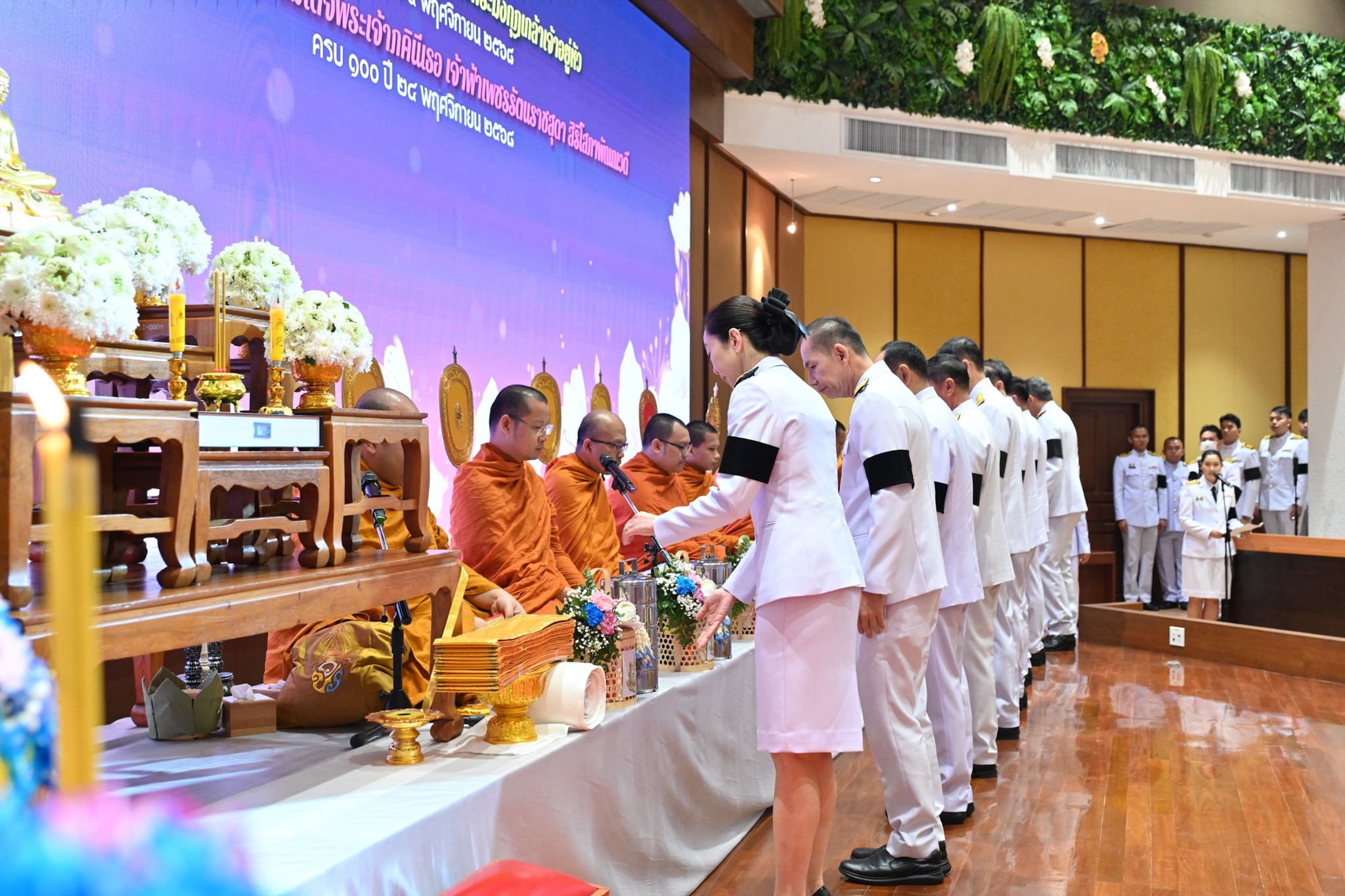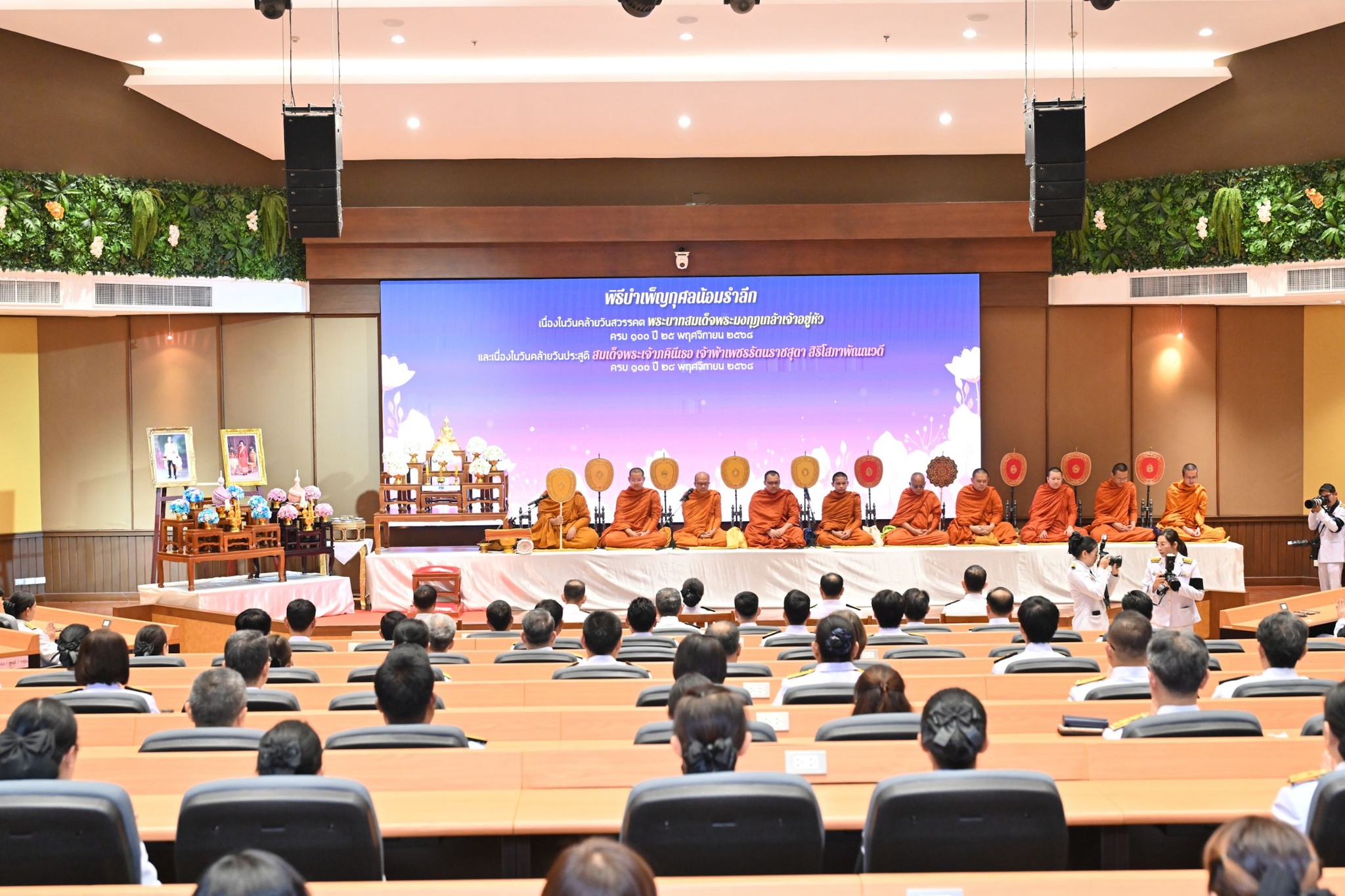 วันนี้ (24 พฤศจิกายน 2568) ดร.ชญานันท์ ภักดีจิตต์ ปลัดกระทรวงทรัพยากรธรรมชาติและสิ่งแวดล้อม นำคณะผู้บริหารกระทรวงฯ และ นายธีระชุณ บุญสิทธิ์ อธิบดีกรมทรัพยากรน้ำ พร้อมด้วยผู้บริหารกรมฯ เข้าร่วมพิธีบำเพ็ญกุศลน้อมรำลึก เนื่องในวันคล้ายวันสวรรคตพระบาทสมเด็จพระมงกุฎเกล้าเจ้าอยู่หัว ครบ 100 ปี 25 พฤศจิกายน 2568 และเนื่องในวันคล้ายวันประสูติสมเด็จพระเจ้าภคินีเธอ เจ้าฟ้าเพชรรัตนราชสุดา สิริโสภาพัณณวดี ครบ 100 ปี 24 พฤศจิกายน 2568 ประกอบด้วยพิธีสวดพระพุทธมนต์และพิธีตักบาตรพระสงฆ์ จำนวน 10 รูป เพื่อน้อมรำลึกในพระมหากรุณาธิคุณหาที่สุดมิได้ ณ ห้องประชุม ศักดิ์สิทธิ์ ตรีเดช และบริเวณหน้าอาคารกรมควบคุมมลพิษ