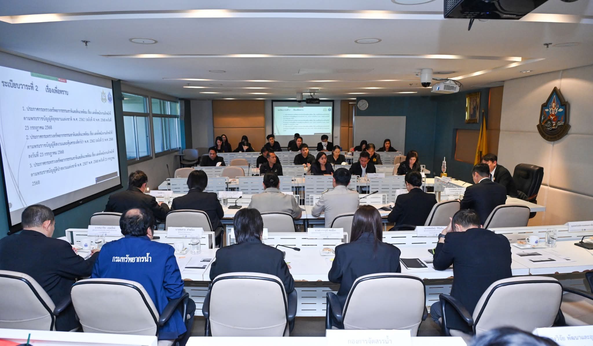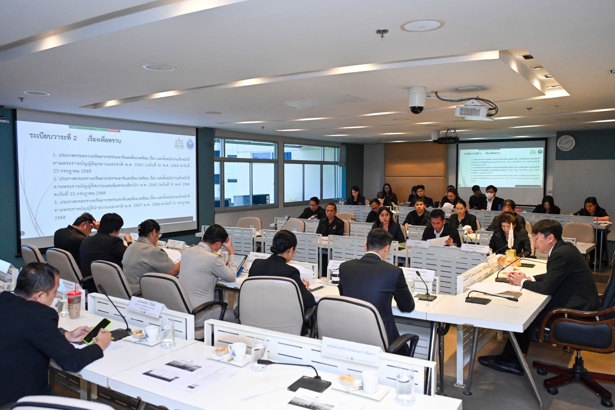 วันนี้ (15 ธันวาคม 2568) นายเวสารัช โสภณดิเรกรัตน์ รองอธิบดีกรมทรัพยากรน้ำ เป็นประธานการประชุมหารือแนวทาง การปฏิบัติงานของพนักงานเจ้าหน้าที่ตามประกาศกระทรวงทรัพยากร ธรรมชาติและสิ่งแวดล้อม 3 ฉบับ ณ ห้องประชุมสายชล ชั้น 9 กรมทรัพยากรน้ำ และผ่านระบบ Zoom โดยมีนายพงศ์พัฒน์ เสมอคำ รองอธิบดีกรมทรัพยากรน้ำ และนายสุพจน์ ภู่รัตนโอภา รองอธิบดี กรมป่าไม้ พร้อมด้วยผู้บริหารและเจ้าหน้าที่ที่เกี่ยวข้องเข้าร่วมประชุม ร่วมกับผู้แทนกรมอุทยานแห่งชาติ สัตว์ป่า และพันธุ์พืช กรมป่าไม้ กรมทรัพยากรน้ำบาดาล และกรมทรัพยากรธรณี การประชุมครั้งนี้มีวัตถุประสงค์เพื่อสร้างความเข้าใจที่ถูกต้อง และเป็นไปในทิศทางเดียวกันเกี่ยวกับการปฏิบัติงานของพนักงาน เจ้าหน้าที่ ตามประกาศกระทรวงทรัพยากรธรรมชาติและสิ่งแวดล้อม ได้แก่ (1) ประกาศแต่งตั้งพนักงานเจ้าหน้าที่ตามพระราชบัญญัติอุทยาน แห่งชาติ พ.ศ. 2562 (ฉบับที่ 4) พ.ศ. 2568 (2) ประกาศแต่งตั้งพนักงานเจ้าหน้าที่ตามพระราชบัญญัติสงวน และคุ้มครองสัตว์ป่า พ.ศ. 2562 (ฉบับที่ 3) พ.ศ. 2568 (3) ประกาศแต่งตั้งพนักงานเจ้าหน้าที่ตามพระราชบัญญัติป่าสงวน แห่งชาติ พ.ศ. 2507 พ.ศ. 2568 ซึ่งทั้งหมดมีผลบังคับใช้และประกาศ ณ วันที่ 23 กรกฎาคม 2568 นอกจากนี้ ที่ประชุมได้มีการพิจารณาแนวทางการปฏิบัติงาน ของพนักงานเจ้าหน้าที่ให้สอดคล้องกับกฎหมายและอำนาจหน้าที่ ตามที่ประกาศกำหนด เพื่อให้การดำเนินงานด้านการบริหารจัดการ ทรัพยากรธรรมชาติเป็นไปอย่างมีประสิทธิภาพ ถูกต้องตามกฎหมาย และสามารถบูรณาการการทำงานร่วมกับหน่วยงานที่เกี่ยวข้อง ได้อย่างชัดเจน