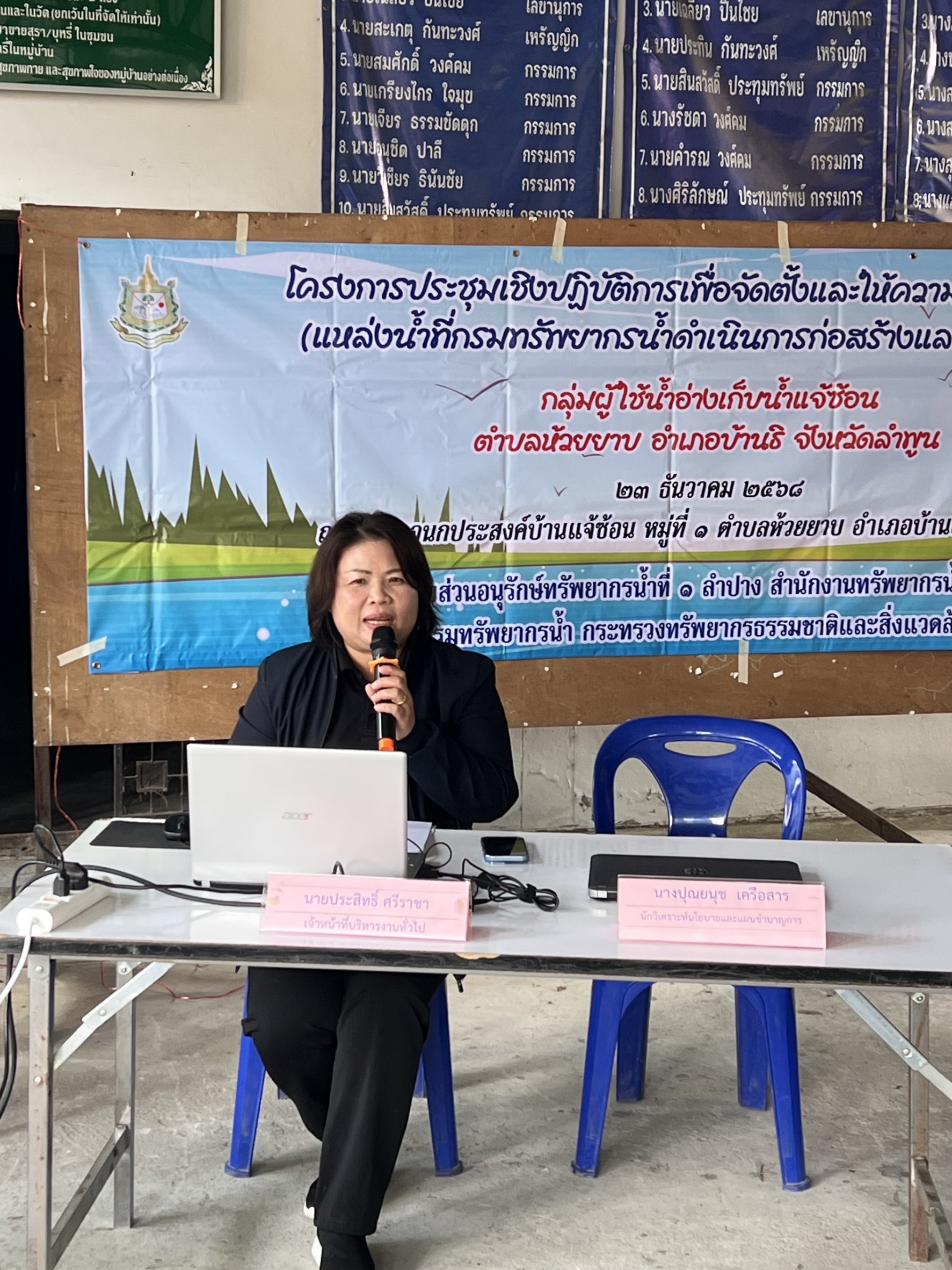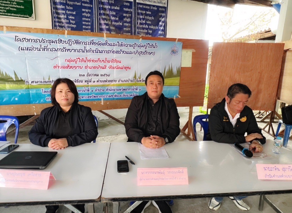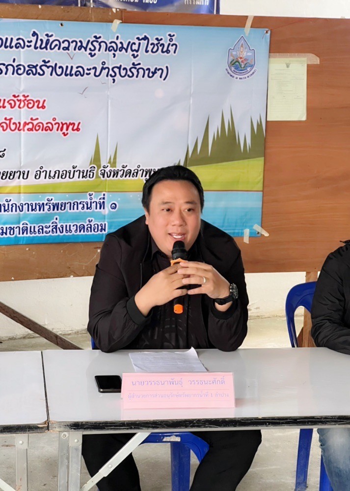 นางสาวสุพัดสอน สีมืด ผู้อำนวยการสำนักงานทรัพยากรน้ำที่ 1 มอบหมายให้ส่วนอนุรักษ์ทรัพยากรน้ำที่ 1 ลำปาง จัดโครงการประชุมเชิงปฏิบัติการเพื่อจัดตั้งและให้ความรู้กลุ่มผู้ใช้น้ำ (แหล่งน้ำที่กรมทรัพยากรน้ำดำเนินการก่อสร้างและบำรุงรักษา) กลุ่มผู้ใช้น้ำอ่างเก็บน้ำแจ้ซ้อน ณ ศาลาอเนกประสงค์บ้านเเจ้ซ้อน หมู่ที่ 1 ต.ห้วยยาบ อ.บ้านธิ จ.ลำพูน มีผู้เข้าร่วมประชุมประกอบด้วย กำนัน ผู้ใหญ่บ้าน ประชาชนในพื้นที่ และกลุ่มผู้ใช้น้ำอ่างเก็บน้ำแจ้ซ้อน จำนวน 45 คน ซึ่งส่วนอนุรักษ์ทรัพยากรน้ำที่ 1 ลำปางได้บรรยายให้ความรู้ทางวิชาการสร้างความเข้าใจเกี่ยวกับบทบาทหลักของกรมทรัพยากรน้ำ และภารกิจของส่วนอนุรักษ์ทรัพยากรน้ำที่ 1 ลำปาง รวมทั้งจัดตั้งกลุ่มผู้ใช้น้ำในพื้นที่ดังกล่าว
