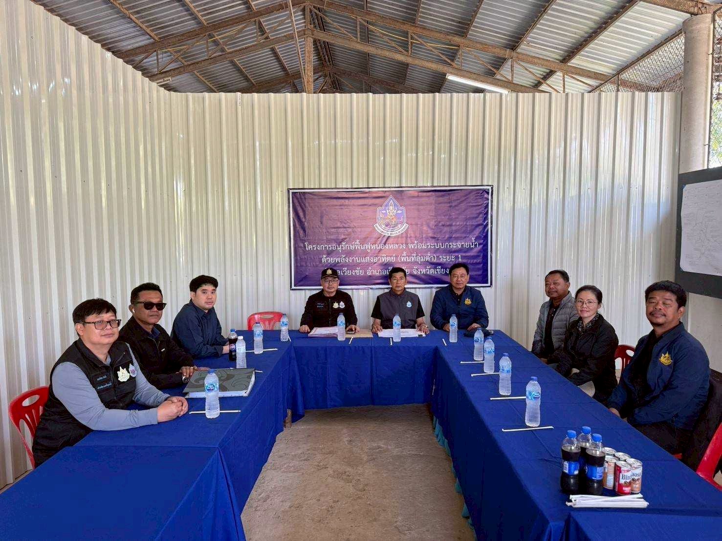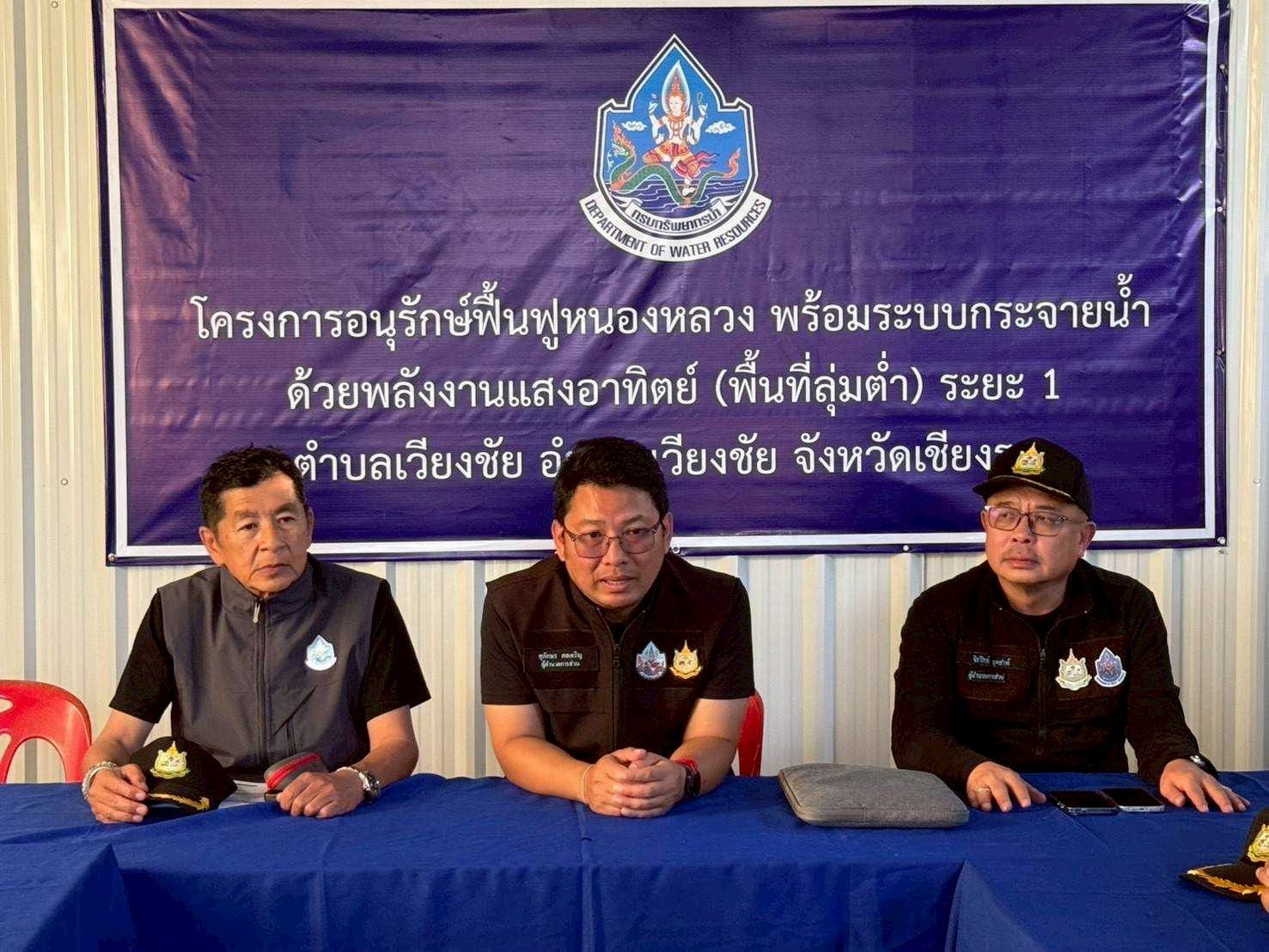 ตามข้อสั่งการของ ท่านธีระชุณ บุญสิทธิ์ อธิบดีกรมทรัพยากรน้ำ ให้เร่งรัดดำเนินงานโครงการประจำปีงบประมาณปี 2568 (งบกระตุ้นเศรษฐกิจ) นางสาวสุพัดสอน สีมืด ผู้อำนวยการสำนักงานทรัพยากรน้ำที่ 1 มอบหมายให้ นายศุภักษร ผลเจริญ ผู้อำนวยการส่วนพัฒนาและฟื้นฟูแหล่งน้ำ ลงพื้นที่เร่งรัด/ติดตาม โครงการอนุรักษ์ฟื้นฟูหนองหลวง พร้อมระบบกระจายน้ำด้วยพลังงานแสงอาทิตย์ (พื้นที่ลุ่มต่ำ) ระยะที่ 1 ตำบลเวียงชัย อำเภอเวียงชัย จังหวัดเชียงราย โครงการดังกล่าวฯมีงานก่อสร้างท่อส่งน้ำ HDPE ขนาด 315 มม. ความยาวรวม 12,944 ม. , ก่อสร้างระบบกระจายน้ำด้วยพลังงานแสงอาทิตย์ ขนาด 37 กิโลวัตต์ จำนวน 8 แห่ง , งานถัง Fusion Bonded Exoxy (FBE) พร้อมอุปกรณ์ประกอบถัง ขนาด 300 ลบ.ม. จำนวน 1 ถัง และ ขนาด 1,000 ลบ.ม. จำนวน 3 ถัง , ก่อสร้างระบบผลิตน้ำสะอาดสำเร็จรูป จำนวน 1 แห่ง ปัจจุบันมีผลการดำเนินงาน 40% สามารถสูบน้ำกระจายน้ำได้ประมาณ 1,000 ลบ.ม.ต่อวัน ประชาชนในพื้นที่ได้รับประโยชน์กว่า 500 ไร่ 150 ครัวเรือน