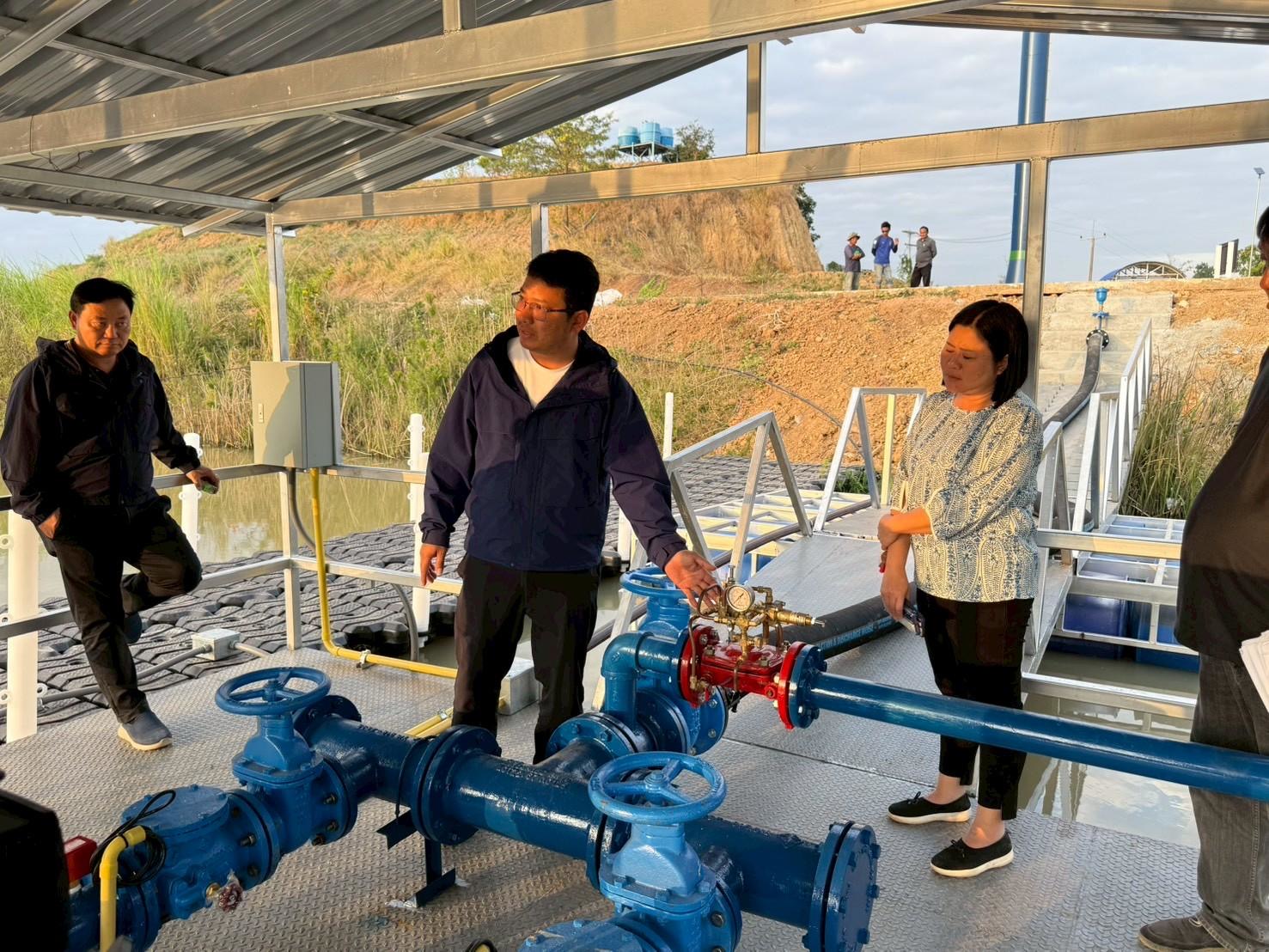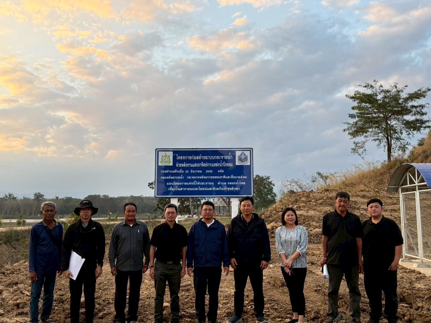 ตามข้อสั่งการของ ท่านธีระชุณ บุญสิทธิ์ อธิบดีกรมทรัพยากรน้ำ ให้เร่งรัดการดำเนินงานโครงการประจำปีงบประมาณ 2568 โดย นางสาวสุพัดสอน สีมืด ผู้อำนวยการสำนักงานทรัพยากรน้ำที่ 1 มอบหมายให้ นายศุภักษร ผลเจริญ ผู้อำนวยการส่วนพัฒนาและฟื้นฟูแหล่งน้ำ ลงพื้นที่ติดตาม โครงการก่อสร้างระบบกระจายน้ำ ด้วยพลังงานแสงอาทิตย์จากแหล่งน้ำบึงหล่ม หมู่ 6 ตำบลคลองน้ำไหล อำเภอคลองลาน จังหวัดกำแพงเพชร โครงการดังกล่าวฯ มีระบบสูบน้ำด้วยพลังงานแสงอาทิตย์ ขนาด 7.5 กิโลวัตต์ จำนวน 1 แห่ง , มีงานทุ่นลอยน้ำระบบสูบน้ำ ขนาด 7.5 กิโลวัตต์ จำนวน 1 ชุด , มีงานโรงสูบน้ำแบบแพลอยน้ำ จำนวน 1 ชุด , ท่อส่งน้ำ ความยาวรวม 3,675 ม.ถังเก็บน้ำ คสล. ทรงกระบอก ขนาด 10 ลบ.ม. จำนวน 6 ถัง ปัจุบันมีผลการดำเนินงาน 100% สามารถสูบน้ำและกระจายน้ำได้มากกว่า 250 ลบ.ม. ต่อวัน ประชาชนในพื้นที่ได้รับประโยชน์กว่า 80 ไร่ 40 ครัวเรือน