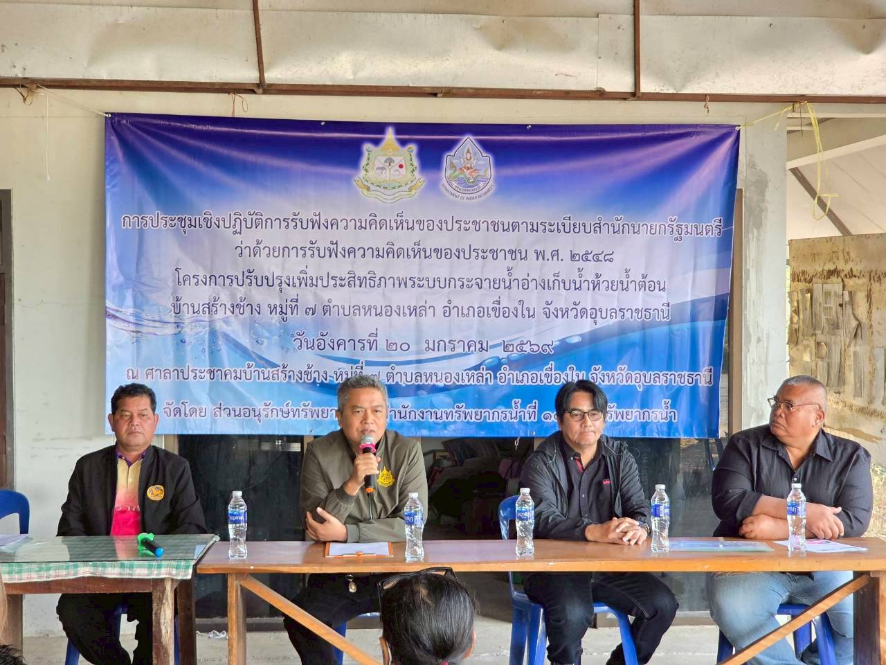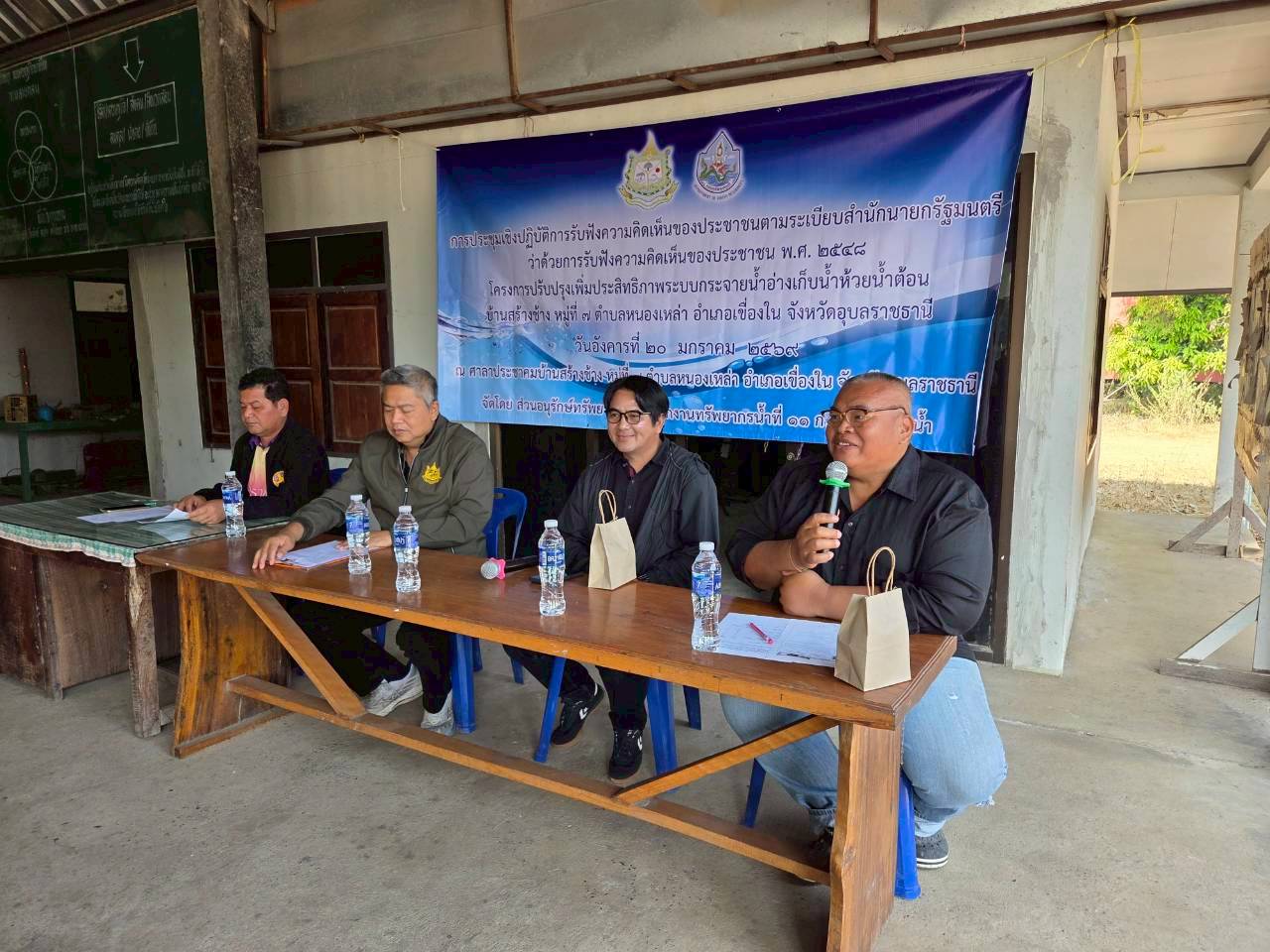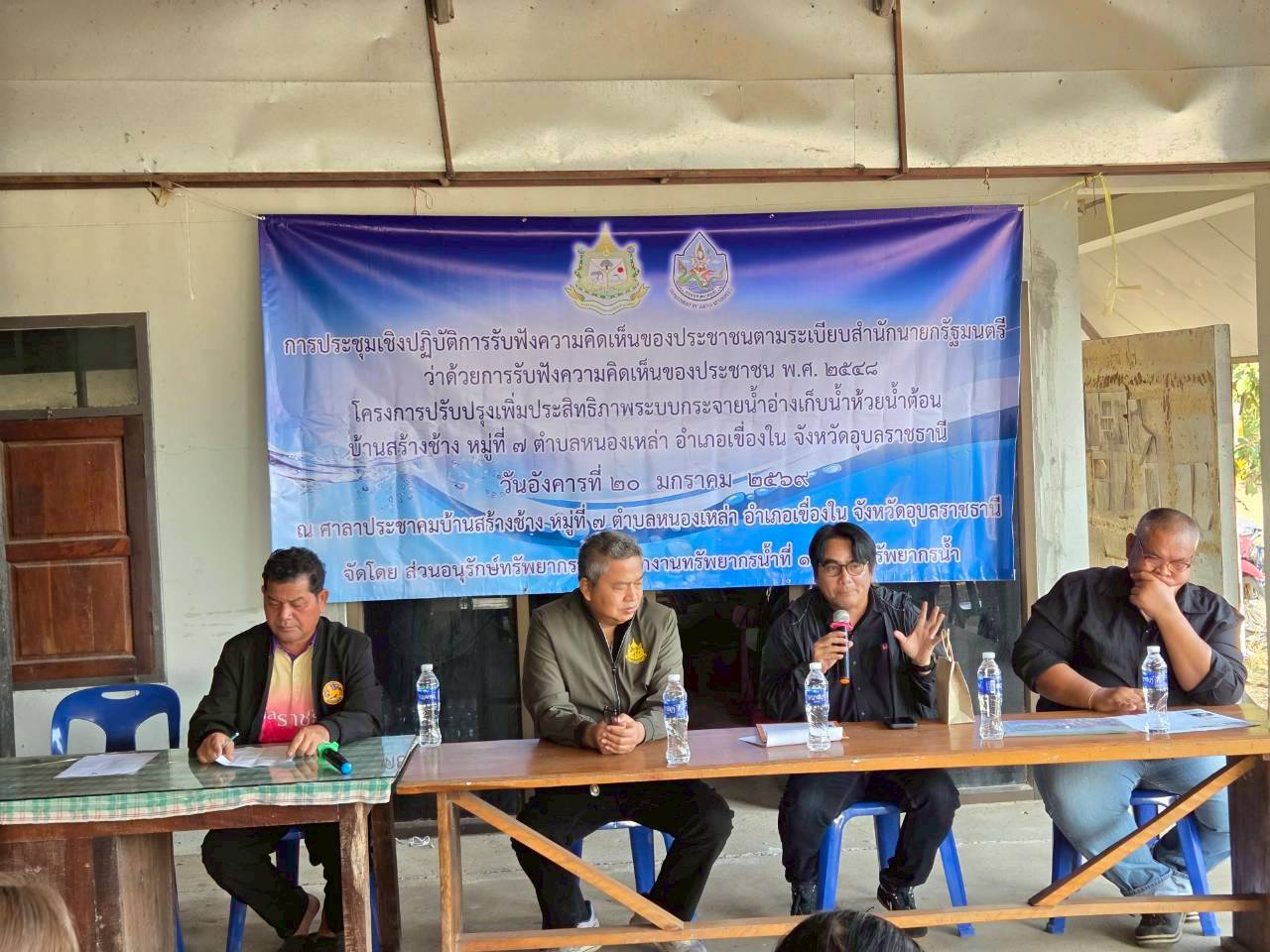 วันที่ 20 มกราคม 2569 นายโภคิน ช้ำเกตุ ผู้อำนวยการสำนักงานทรัพยากรน้ำที่ 11 มอบหมายให้ เจ้าหน้าที่ส่วนอนุรักษ์ทรัพยากรน้ำลงพื้นที่ จ. อุบลราชธานี และ จ.อำนาจเจริญ เพื่อจัดประชุม เชิงปฏิบัติการรับฟังความคิดเห็นของประชาชนตามระเบียบสำนักนายกรัฐมนตรีว่าด้วยการรับ ฟังความคิดเห็นของประชาชน พ.ศ. 2548 จำนวน 2 โครงการ ดังนี้ 1) “โครงการโครงการปรับปรุง เพิ่มประสิทธิภาพระบบกระจายน้ำอ่างเก็บน้ำห้วยน้ำต้อน” บ.สร้างช้าง ม. 7 ต.หนองเหล่า อ.เขื่องใน จ.อุบลราชธานี ณ ศาลาประชาคม บ.สร้างช้าง ม. 7 มีประชาชนเข้าร่วมโครงการฯ จำนวน 43 ราย เเละ2) “โครงการปรับปรุงเพิ่มประสิทธิภาพระบบกระจายน้ำสนับสนุนเกษตรแปลงใหญ่ข้าว” บ.กุงชัย ม. 10, 11, 13 ต.ดงบัง อ.ลืออำนาจ จ.อำนาจเจริญ ณ ศาลาประชาคม บ.กุงชัย ม. 10 (แห่งที่ 2) มีประชาชนเข้าร่วมโครงการฯ จำนวน 55 ราย ทั้งนี้ มีการชี้แจงรายละเอียดเกี่ยวกับโครงการ ของกรมทรัพยากรน้ำที่จะดำเนินการในพื้นที่ ซึ่งที่ประชุมฯ มีมติเห็นชอบ ให้ดำเนินการโครงการฯ และให้ข้อคิดเห็นข้อเสนอแนะที่เป็นประโยชน์ โดยสำนักงานทรัพยากรน้ำที่ 11 จะนำข้อเสนอแนะ และความต้องการของที่ประชุมไปพิจารณาดำเนินการเพื่อขอรับการสนับสนุนงบประมาณการก่อสร้างโครงการต่อไป