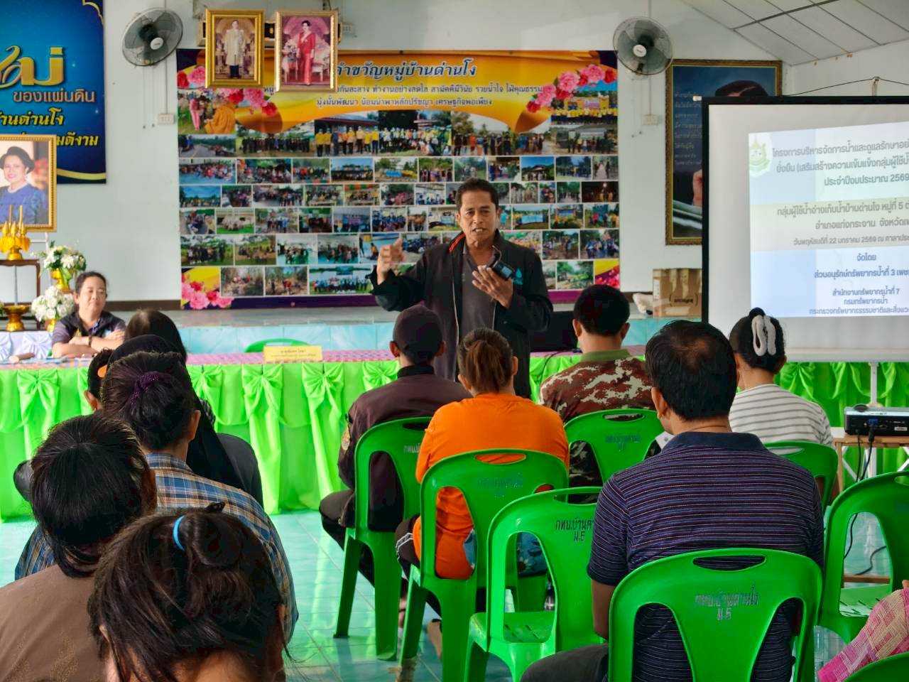 วันที่ 22 มกราคม 2569 นายอนันต์ โพธิ์พันธุ์ ผู้อำนวยการสำนักงานทรัพยากรน้ำที่ 7 มอบหมายให้ส่วนอนุรักษ์ทรัพยากรน้ำที่ 3 เพชรบุรี ดำเนินการจัดโครงการบริหารจัดการน้ำและดูแลรักษาอย่างมีส่วนร่วมและยั่งยืน (เสริมสร้างความเข้มแข็งกลุ่มผู้ใช้น้ำ/เครือข่ายเดิม) กลุ่มผู้ใช้น้ำอ่างเก็บน้ำด่านโง หมู่ที่ 5 ตำบลห้วยแม่เพรียง อำเภอแก่งกระจาน จังหวัดเพชรบุรี ณ ศาลาประชาคมบ้านด่านโง หมู่ที่ 5 ตำบลห้วยแม่เพรียง อำเภอแก่งกระจาน จังหวัดเพชรบุรี เพื่อส่งเสริมให้ความรู้เกี่ยวกับการจัดการขยะเพื่อลดมลพิษต่อสิ่งแวดล้อมแนวทางการบริหารจัดการกลุ่มผู้ใช้น้ำ การขอจดทะเบียนองค์กรผู้ใช้น้ำตามกฎกระทรวงองค์กรผู้ใช้น้ำ พ.ศ.2564 และกิจกรรมปล่อยพันธุ์ปลาลงสู่แหล่งน้ำเพื่อรักษาสมดุลของระบบนิเวศ ผู้เข้าร่วมโครงการ ประกอบด้วย ผู้แทนองค์การบริหารส่วนตำบลห้วยแม่เพรียง ผู้นำชุมชน ประชาชนในพื้นที่ และสมาชิกกลุ่มผู้ใช้น้ำอ่างเก็บน้ำด่านโง รวมทั้งสิ้น 58 คน