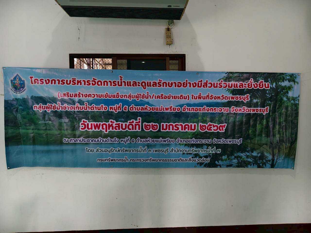 สทน.7 จัดโครงการเสริมสร้างความเข้มแข็งกลุ่มผู้ใช้น้ำ/เครือข่ายเดิม ตำบลห้วยแม่เพรียง อำเภอแก่งกระจาน จังหวัดเพชรบุรี