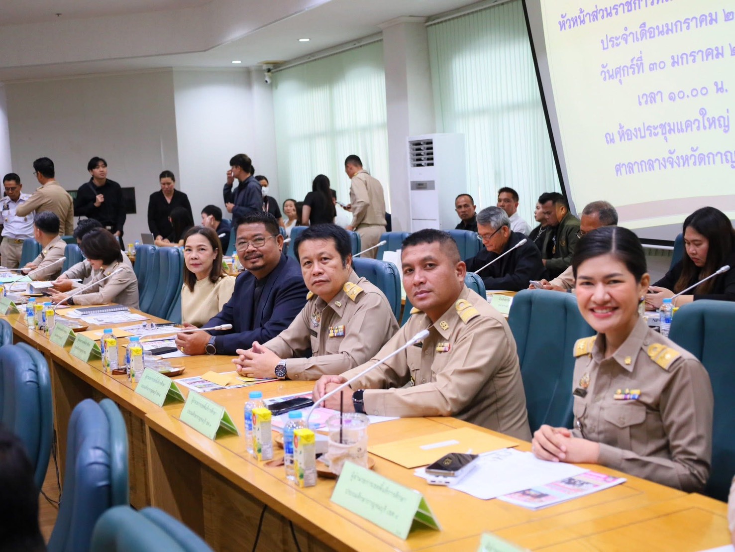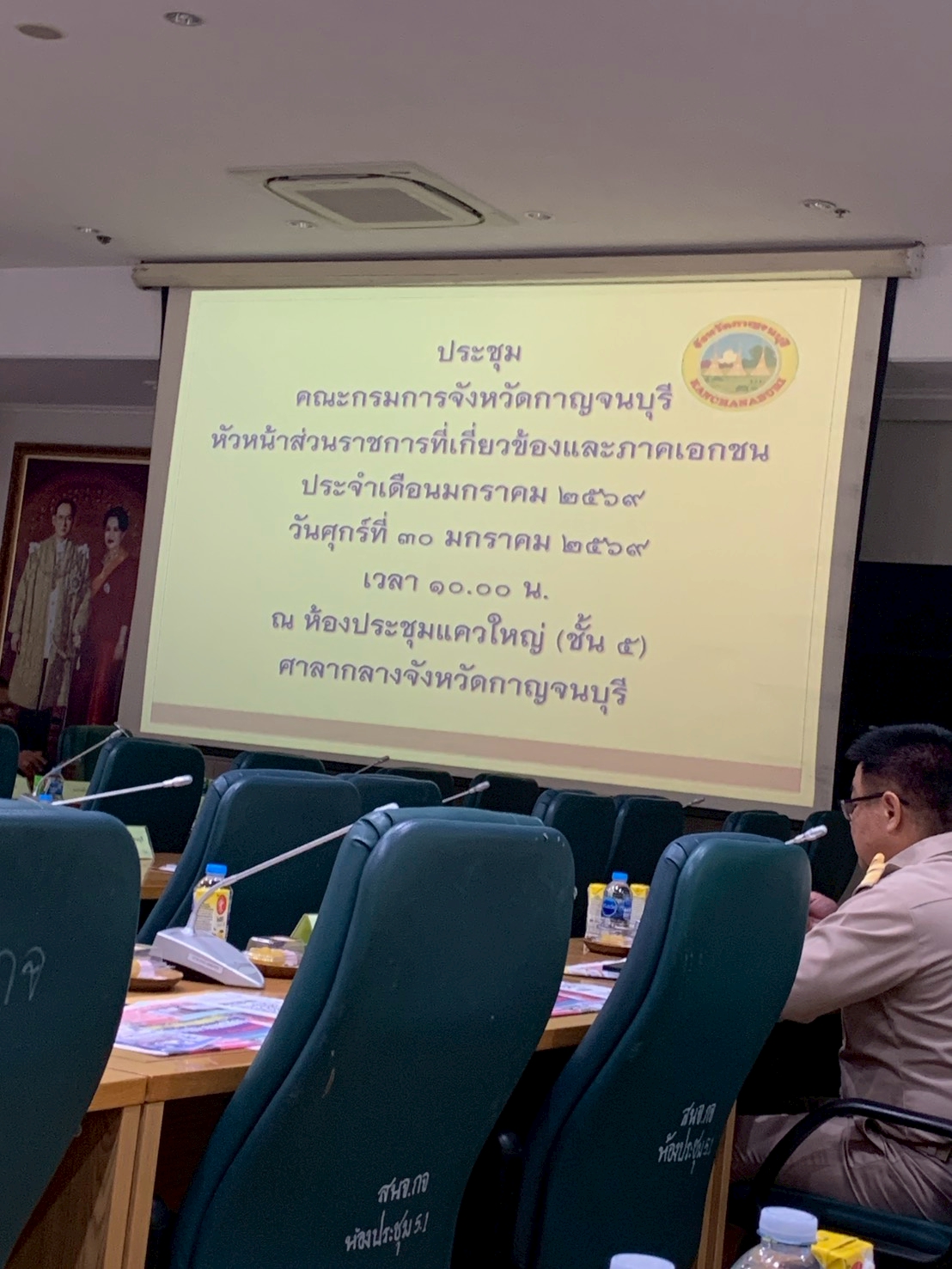 วันที่ 30 มกราคม 2569 นายอนันต์ โพธิ์พันธุ์ ผู้อำนวยการสำนักงานทรัพยากรน้ำที่ 7 มอบหมายให้ นางประไพ สุวรรณประสม ผู้อำนวยการส่วนอนุรักษ์ทรัพยากรน้ำที่ 1 ราชบุรี เข้าร่วมประชุมคณะกรมการจังหวัดกาญจนบุรี หัวหน้าส่วนราชการที่เกี่ยวข้องและภาคเอกชน ประจำเดือนมกราคม พ.ศ.2569 เพื่อรับทราบผลการดำเนินงานของหน่วยงานราชการในจังหวัดกาญจนบุรี แนะนำหัวหน้าส่วนราชการย้ายมาดำรงตำแหน่งใหม่ 10 ราย และแจ้งข้อมูลข่าวสารของจังหวัดให้ทราบ โดยมีนางสาววริษฐา สงวนเสริมศรี ผู้ว่าราชการจังหวัดกาญจนบุรี เป็นประธานการประชุม ณ ห้องประชุมแควใหญ่ ชั้น 5 ศาลากลางจังหวัดกาญจนบุรี
