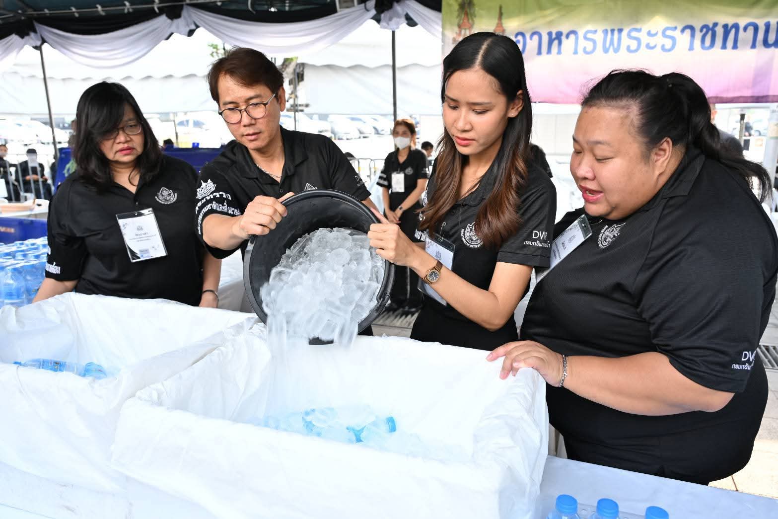 วันนี้ (31 มกราคม 2569) กรมทรัพยากรน้ำร่วมดำเนินกิจกรรม จิตอาสากระทรวงทรัพยากรธรรมชาติและสิ่งแวดล้อม (จิตอาสา ทส.) ในการปฏิบัติงานร่วมกับศูนย์อำนวยการจิตอาสาพระราชทาน ณ ท้องสนามหลวง โดยมีนางสาวพรรณพร สุวรรณ วิศวกรโยธาชำนาญการพิเศษ รักษาการในตำแหน่งผู้เชี่ยวชาญเฉพาะด้านระบบการจัดการทรัพยากรน้ำ และเจ้าหน้าที่กองการจัดสรรน้ำ แจกน้ำและอาหารกับโรงครัวพระราชทาน เพื่อให้บริการแก่ประชาชนที่เดินทางเข้าถวายสักการะพระบรมศพ สมเด็จพระนางเจ้าสิริกิติ์ พระบรมราชินีนาถ พระบรมราชชนนีพันปีหลวง ณ พระที่นั่งดุสิตมหาปราสาท ในพระบรมมหาราชวัง