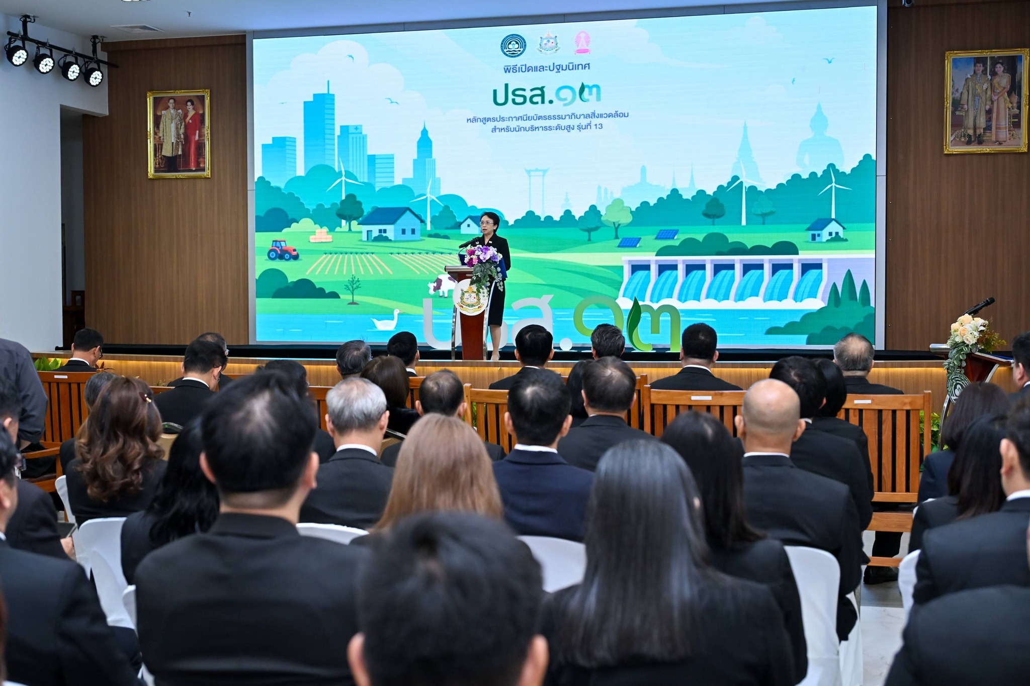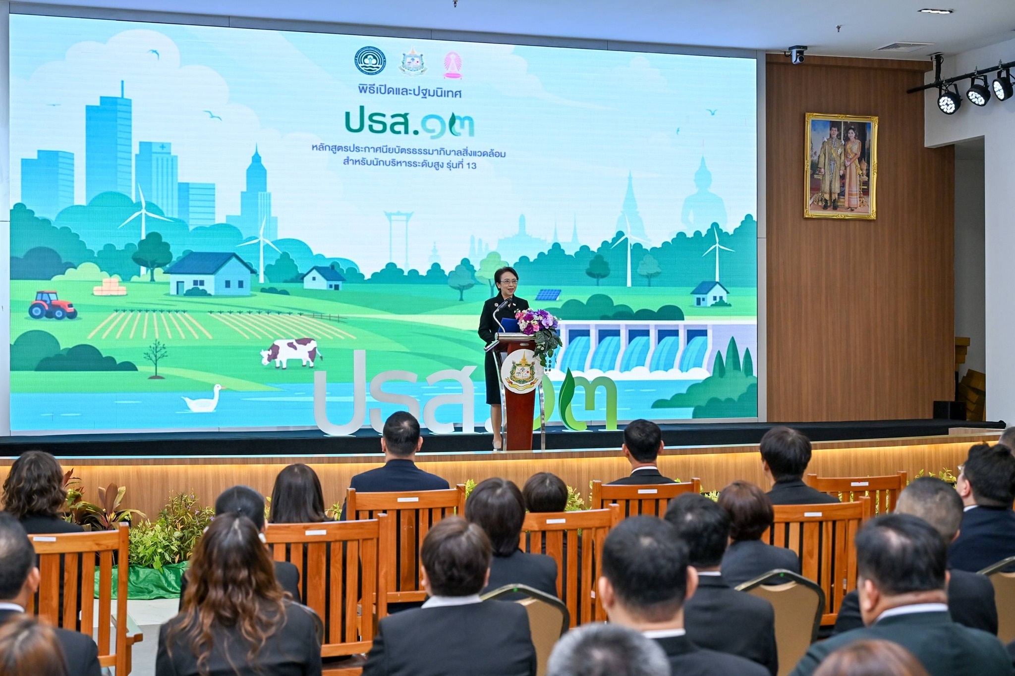 รองปลัดกระทรวงฯ กล่าวว่า การจัดอบรมดังกล่าวมีวัตถุประสงค์เพื่อเสริมสร้างศักยภาพผู้นำในการขับเคลื่อนการรับมือการเปลี่ยนแปลงสภาพภูมิอากาศและสิ่งแวดล้อมตามหลักธรรมาภิบาล สร้างเครือข่ายความร่วมมือระหว่างภาครัฐ เอกชนและภาคส่วนที่เกี่ยวข้อง โดยหลักสูตร ปธส.13 มุ่งเน้นแนวคิด “ไทยในยุคภูมิอากาศใหม่ : นำการลดคาร์บอน เสริมความพร้อมรับภัย และสร้างสังคมเท่าเทียม หรือ Thailand Climate Leadership : Decarbonization, Resilience, and Social Equity” สนับสนุนการบรรลุเป้าหมายการลดก๊าซเรือนกระจกของประเทศและการพัฒนาอย่างยั่งยืน สามารถนำองค์ความรู้ไปประยุกต์ใช้และต่อยอดความร่วมมือในการขับเคลื่อนงานด้านทรัพยากรธรรมชาติและสิ่งแวดล้อมอย่างเป็นรูปธรรม