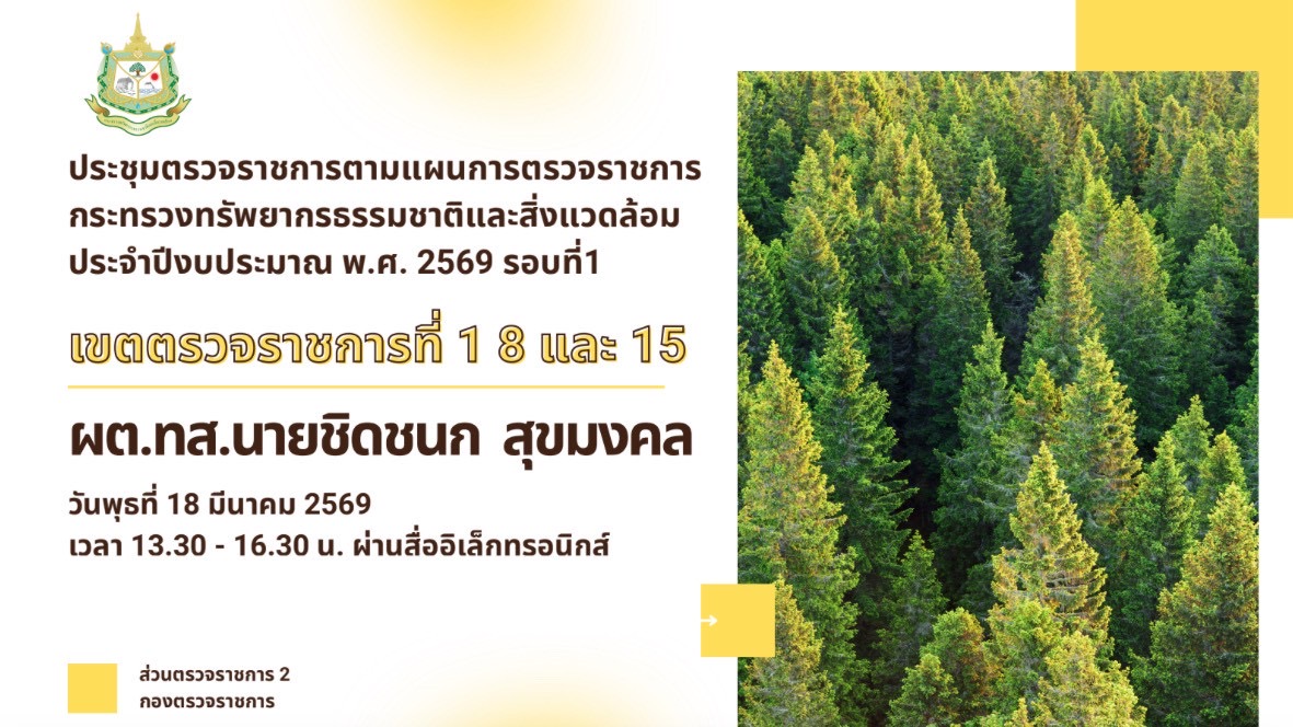 นางสาวสุพัดสอน สีมืด ผู้อำนวยการสำนักงานทรัพยากรน้ำที่ 1 มอบหมายให้คณะผู้บริหารและเจ้าหน้าที่ เข้าร่วมประชุมตรวจราชการตามแผนการตรวจราชการกระทรวงทรัพยากรธรรมชาติและสิ่งแวดล้อม ประจำปีงบประมาณ พ.ศ. 2569 รอบที่ 1 ในพื้นที่เขตตรวจราชการที่ 1 8 และ 15 (เชียงใหม่ ลำพูน แม่ฮ่องสอน ลำปาง) ผ่านระบบประชุมออนไลน์ โดยมี นายชิดชนก สุขมงคล ผู้ตรวจราชการกระทรวงทรัพยากรธรรมชาติและสิ่งแวดล้อม เป็นประธานการประชุม