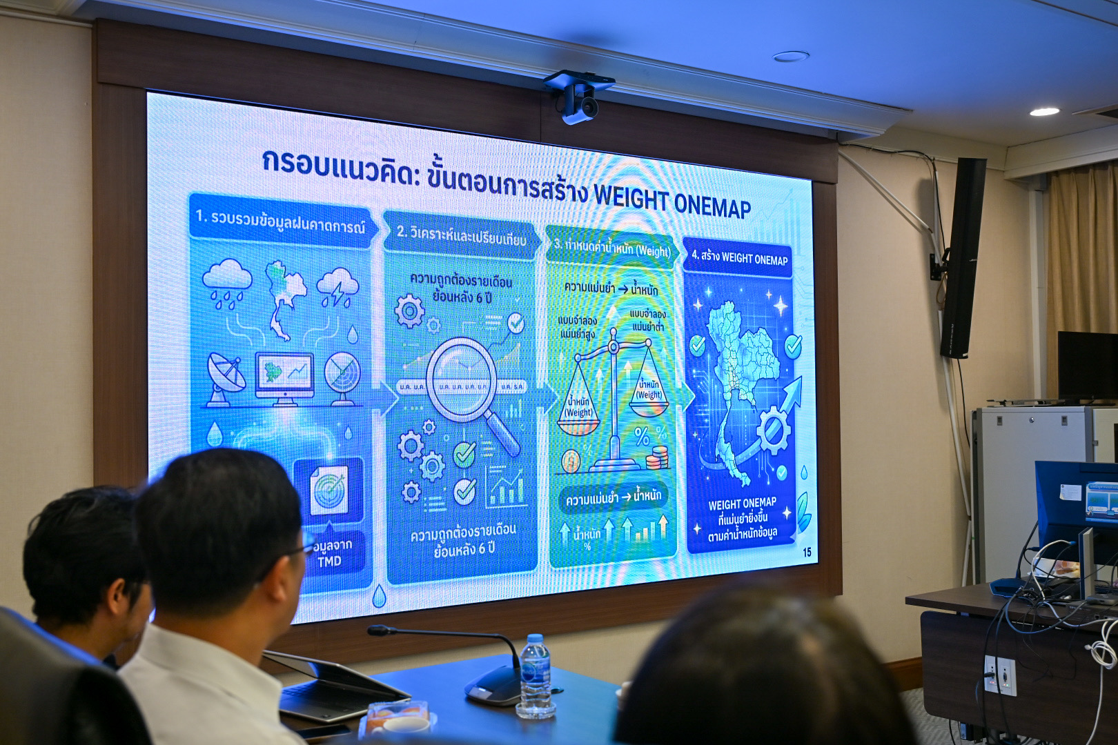 ทั้งนี้ ที่ประชุมได้ร่วมพิจารณาประเด็นสำคัญ อาทิ แนวโน้มการคาดการณ์สภาพอากาศและปริมาณฝนในช่วงปี 2570–2571 ตลอดจนการนำเทคโนโลยีและนวัตกรรมสมัยใหม่ เช่น ระบบ
