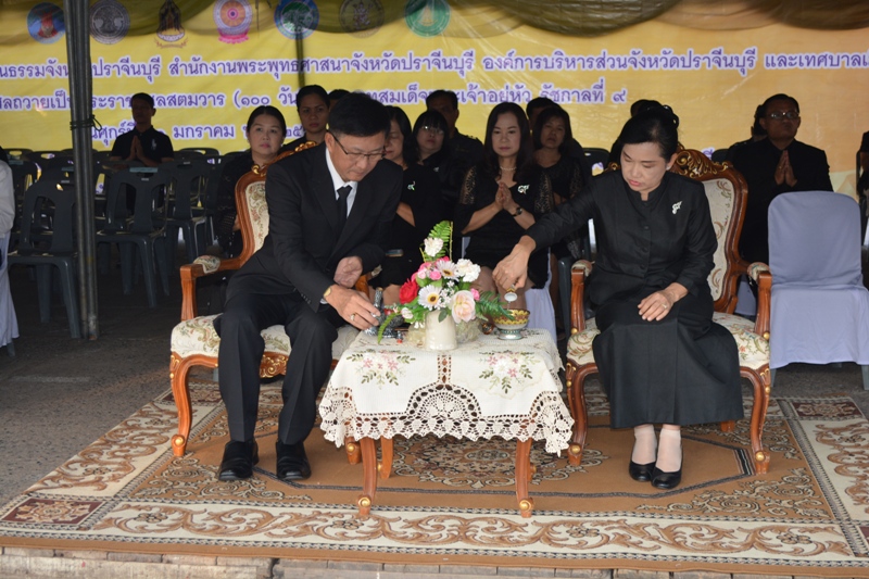 เมื่อวันที่ ๒๐ มกราคม ๒๕๖๐ เวลา ๐๗.๐๐ น. นายสมฤทธิ์ วิไลพรรัตนา ผู้อำนวยการสำนักงานทรัพยากรน้ำภาค ๖ มอบหมายให้ ผู้อำนวยการส่วนอำนวยการ ว่าที่พันตรี คมน์เดช ไชยชนะ และเจ้าหน้าที่ ร่วมพิธีทำบุญตักบาตรเพื่อถวายเป็นพระราชกุศลครบรอบสตมวาร ๑๐๐ วัน พระบาทสมเด็จพระปรมินทรมหาภูมิพลอดุลยเดช ณ บริเวณลานพระบรมราชานุสาวรีย์ รัชกาลที่ ๕ หน้าองค์การบริหารส่วนจังหวัดปราจีนบุรี จังหวัดปราจีนบุรี นำโดยนายสะริยะ อรมโรจน์วรวุฒิ ผู้ว่าราชการจังหวัดปราจีนบุรี