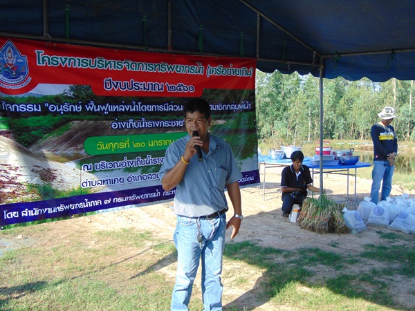 บริหารจัดการลุ่มน้ำแม่กลอง จัดโครงการบริหารจัดการทรัพยากรน้ำ (เครือข่ายเดิม) ประจำปี ๒๕๖๐ ภายใต้กิจกรรม “อนุรักษ์ ฟื้นฟูแหล่งน้ำ โดยการมีส่วนร่วมของสมาชิกกลุ่มผู้ใช้น้ำอ่างเก็บน้ำรางกระชาย” ณ บริเวณอ่างเก็บน้ำรางกระชาย หมู่ที่ ๑๑ ตำบลสวนผึ้ง อำเภอสวนผึ้ง จังหวัดราชบุรี