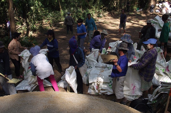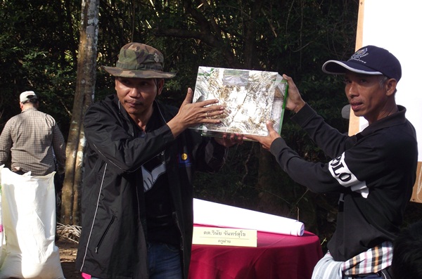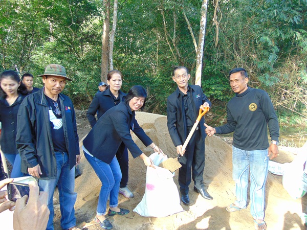 กิจกรรมในวันนี้ ได้รับแรงสนับสนุนจากทีมงานครูฝายจังหวัดประจวบคีรีขันธ์ ครูฝายอำเภอไทรโยคจังหวัดกาญจนบุรี นำทีมโดย ด.ต.วินัย จันทร์สุโข ประธานกลุ่มผู้ใช้น้ำบ้านไร่บน หมู่ ๒,๓ ตำบลหาดขาม อำเภอกุยบุรี จังหวัดประจวบคีรีขันธ์ ผู้ร่วมกิจกรรมประกอบด้วย สมาชิกกลุ่มผู้ใช้น้ำฯ หมู่ที่ ๓,๔,๕ และ หมู่ที่ ๖ ผู้นำท้องถิ่น/ ผู้นำท้องที่ ส่วนราชการตำบลสหกรณ์นิคม ส่วนราชการอำเภอทองผาภูมิ อาทิ อุทยานแห่งชาติลำคลองงูหน่วยพัฒนาการเคลื่อนที่ ๑๑ ศูนย์สาธิตการพัฒนาและรณรงค์การใช้หญ้าแฝกด้านป่าไม้ที่ ๔ จังหวัดกาญจนบุรี และผู้ร่วมสังเกตการณ์ รวมประมาณ ๙๐ คน
