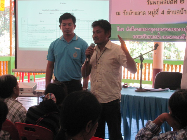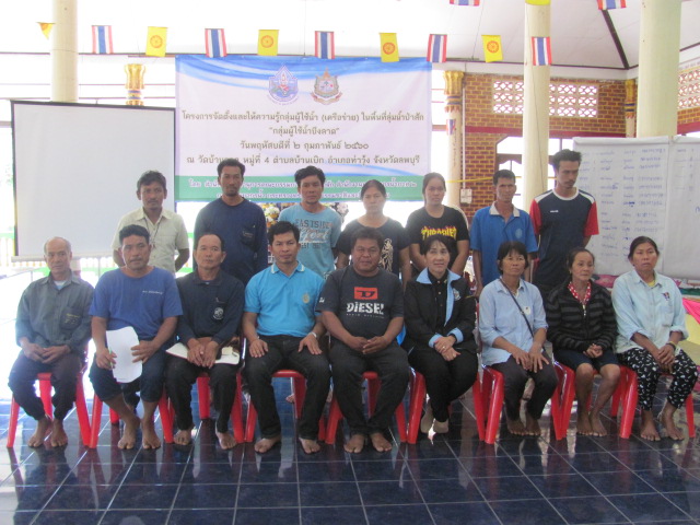 วัตถุประสงค์ เพื่อจัดตั้งกลุ่มผู้ใช้น้ำ/เครือข่าย การบริหารจัดการทรัพยากรน้ำในพื้นที่ลุ่มน้ำป่าสัก ให้เป็นผู้นำแนวทางในการบริหารจัดการทรัพยากรน้ำ การอนุรักษ์ ฟื้นฟู การดูแลรักษาทรัพยากรน้ำและทรัพยากรอื่นๆที่เกี่ยวข้องไปสู่การปฏิบัติในพื้นที่ให้เกิดผลเป็นรูปธรรม เพื่อเสริมสร้างความรู้ความเข้าใจให้กลุ่มผู้ใช้น้ำ/เครือข่ายในด้านการดูแล อนุรักษ์ฟื้นฟู และการบำรุงรักษาแหล่งน้ำให้อยู่ในสภาพใช้ประโยชน์ได้อย่างมีประสิทธิภาพ และเพื่อส่งเสริมให้กลุ่มผู้ใช้น้ำ/เครือข่าย มีความเข้มแข็ง สามารถดำเนินงานบริหารจัดการทรัพยากรน้ำในพื้นที่ได้อย่างมีประสิทธิภาพ โดยมีผู้เข้าร่วมโครงการประกอบด้วยประชาชนผู้มีส่วนได้เสียในพื้นที่ลุ่มน้ำป่าสัก นายกองค์การบริหารส่วนตำบลบ้านเบิก ปลัดองค์การบริหารส่วนตำบลบ้านเบิก และประมงอำเภอท่าวุ้ง จำนวน 85 คน