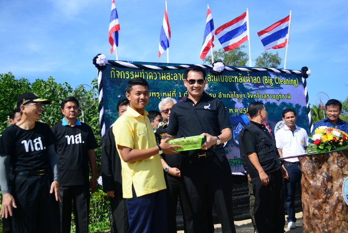 วันนี้ (7 ก.พ.2560) นายธีระพร วีนะสนธิ ผู้อำนวยการสำนักงานทรัพยากรน้ำภาค 10 นำคณะเจ้าหน้าที่ฯ ร่วมกิจกรรมทำความสะอาดชุมชนและเก็บขยะหลังน้ำลด ณ บ้านฝายพรุ หมู่ที่ 1 ตำบลตะกรบ อำเภอไชยา จังหวัดสุราษฎร์ธานี โดยสำนักงานทรัพยากรธรรมชาติและสิ่งแวดล้อมจังหวัดสุราษฎร์ธานี (ทสจ.)ในนามของผู้แทนหน่วยงานภายใต้สังกัดกระทรวงทรัพยากรธรรมชาติและสิ่งแวดล้อม ในพื้นที่จังหวัดสุราษฎร์ธานี ประกอบด้วย สำนักงานทรัพยากรธรรมชาติและสิ่งแวดล้อมจังหวัดสุราษฎร์ธานี สำนักงานสิ่งแวดล้อมภาคที่ 14 สำนักงานบริหารจัดการทรัพยากรทางทะเลและชายฝั่งที่ 4 สำนักบริหารพื้นที่อนุรักษ์ที่ 4 สำนักงานจัดการทรัพยากรป่าไม้ที่ 11(สุราษฎร์ธานี) สำนักงานทรัพยากรน้ำภาค 10 สำนักงานทรัพยากรธรณีเขต 4 (สุราษฎร์ธานี) องค์กรอุตสาหกรรมป่าไม้ภาคใต้ โดยมีนายโสภณ ทองดี รองอธิบดีกรมทรัพยากรทางทะเลและชายฝั่ง เป็นประธาน โดยมีกิจกรรมปล่อยหอย / เก็บขยะบริเวณชายหาดบ้านฝายพรุ และบริเวณป่าชายเลนที่คลื่นได้ซัดขยะเข้าฝั่งติดอยู่บริเวณต้นไม้และรากไม้โกงกาง เพื่อให้ชายหาดฝายพรุและบริเวณริมทะเลมีความสะอาดและมีทัศนียภาพที่สวยงาม เป็นที่ประทับใจแก่นักท่องเที่ยว โดยได้รับความร่วมมือและร่วมใจโดยพร้อมเพรียงกันจาก ภาคเอกชน สถานศึกษา ประกิอบด้วยอำเภอไชยา องค์การบริหารส่วนตำบลตะกรบ โรงเรียนกาญจนาภิเษก โรงเรียนวัดขจรบำรุง โรเรียนวัดวิชิตธาราราม และประชาชนชาวตำบลตะกรบ จำนวนกว่า 300 คน