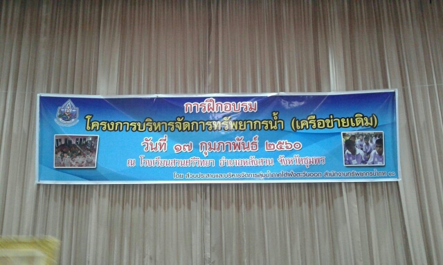 เมื่อวันที่ 17 กุมภาพันธ์ 2560 สำนักงานทรัพยากรน้ำภาค 10 โดยส่วนประสานและบริหารจัดการลุ่มน้ำภาคใต้ฝั่งตะวันออก ส่วนที่ 1 จังหวัดชุมพร จัดฝึกอบรมโครงการบริหารจัดการทรัพยากรน้ำ (เครือข่ายเดิม) ณ โรงเรียนสวนศรีวิทยา อำเภอหลังสวน จังหวัดชุมพร เพื่อสนับสนุนกลุ่มเครือข่ายให้มีการบริหารจัดการทรัพยากรน้ำ รวมทั้งเพิ่มความเข้มแข็งของกลุ่มเครือข่าย และเพื่อสนับสนุนกิจกรรมการดำเนินงานของกลุ่มเครือข่ายให้มีการบริหารจัดการกลุ่มเครือข่ายอย่างต่อเนื่อง โดยมีผู้เข้าร่วมโครงการประกอบด้วยสมาชิกเครือข่ายนักเรียน จำนวน 121 คน