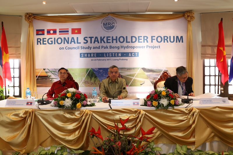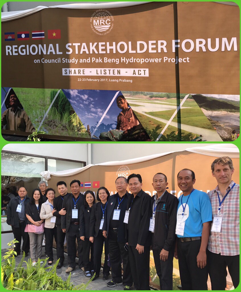 สำนักเลขาธิการคณะกรรมาธิการแม่น้ำโขงแห่ง (Mekong River Commission Secretariat: MRCS) จัดการประชุมเวทีระดับภูมิภาคเวทีผู้มีส่วนได้ส่วนเสียสำหรับการศึกษาการบริหารจัดการและพัฒนาลุ่มแม่น้ำโขงอย่างยั่งยืน รวมถึงผลกระทบจากการพัฒนาโครงการไฟฟ้าพลังน้ำในแม่น้ำโขงสายประธาน (Council Study) และโครงการไฟฟ้าพลังน้ำเขื่อนปากแบง (ของ สปป.ลาว) ระหว่างวันที่ 22 – 23 กุมภาพันธ์ 2560 ณ เมืองหลวงพระบางสปป.ลาว โดยมีผู้เข้าร่วมจากประเทศสมาชิก องค์กรอิสระ องค์กรระหว่างประเทศ และผู้สนใจทั่วไป แทนฝ่ายไทยเข้าร่วมประชุม ดังนี้ ผู้แทนกรมทรัพยากรน้ำ สำนักงานนโยบายและแผนทรัพยากรธรรมชาติและสิ่งแวดล้อม การไฟฟ้าฝ่ายผลิตแห่งประเทศไทย กรมประมง สถาบันชุมชนลุ่มน้ำโขง ผู้แทนเครือข่ายภาคประชาสังคมจังหวัดเชียงราย ผู้แทนภาคประชาสังคมภาคตะวันออกเฉียงเหนือตอนบน (เลย บึงกาฬ หนองคาย และนครพนม) ผู้แทนเครือข่ายภาคประชาสังคมภาคตะวันออกเฉียงเหนือตอนล่าง (มุกดาหาร อำนาจเจริญ อุบลราชธานี)