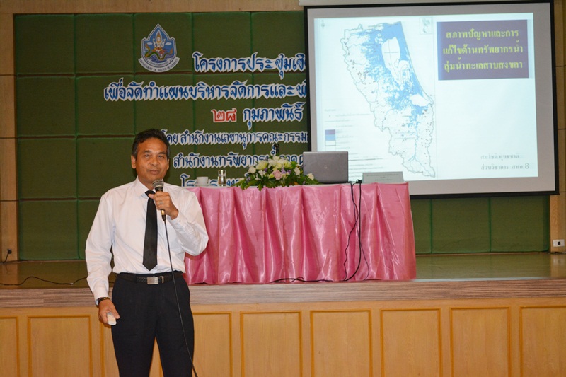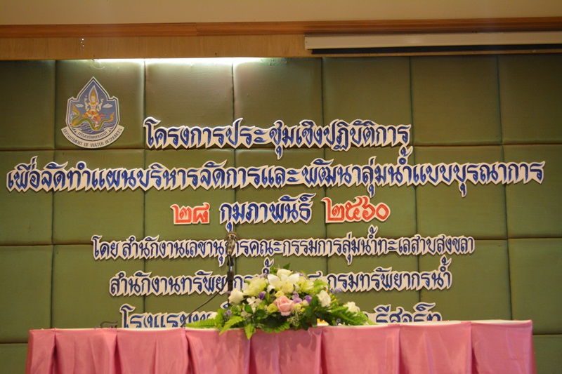 วันที่ 28 กุมภาพันธ์ 2560 สำนักงานทรัพยากรน้ำภาค 8 โดยส่วนประสานและบริหารจัดการลุ่มน้ำทะเลสาบสงขลา จัดโครงการประชุมเชิงปฏิบัติการเพื่อจัดทำแผนบริหารจัดการและพัฒนาลุ่มน้ำแบบบูรณาการ ณ โรงแรมหาดใหญ่พาราไดส แอนด์ รีสอร์ท อ.หาดใหญ่ จ.สงขลา วิทยากรบรรยายโดยนายสัมพันธ์ ดุลยาภรณ์ ผู้อำนวยการส่วนประสานและบริหารจัดการลุ่มน้ำทะเลสาบสงขลา นายสมโชติ พุทธชาติ ผู้อำนวยการส่วนวิชาการ และนายโสภณ สัสดีอำไพ ผู้อำนวยการส่วนประสานและบริหาจัดการลุ่มน้ำภาคใต้ฝั่งตะวันออก ผู้เข้าร่วมประชุมประกอบด้วย คณะกรรมการลุ่มน้ำ คณะอนุกรรมการลุ่มน้ำ คณะทำงานลุ่มน้ำ เครือข่ายและประชาชนในพื้นที่ลุ่มน้ำ ส่วนราชการที่เกี่ยวข้อง เจ้าหน้าที่และผู้สังเกตการณ์ รวมทั้งสิ้น 89 คน โดยมีวัตถุประสงค์เพื่อให้องค์กรลุ่มน้ำและผู้มีส่วนได้ส่วนเสีย มีส่วนร่วมในการจัดทำแผนบริหารจัดการและพัฒนาลุ่มน้ำแบบบูรณาการ