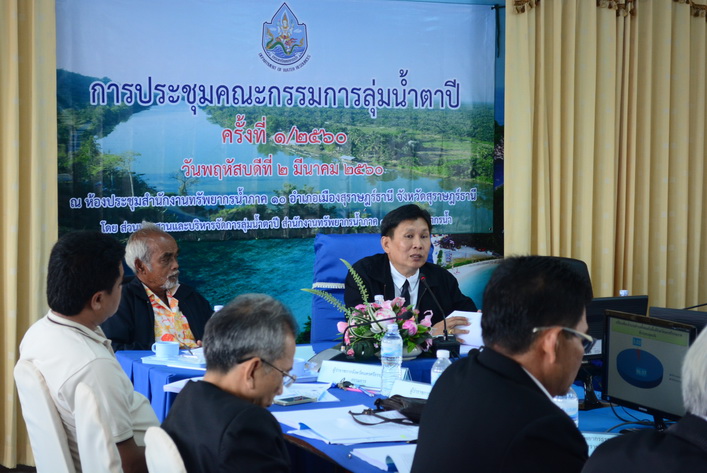วันนี้ (2 มีนาคม 2560) สำนักงานทรัพยากรน้ำภาค 10 โดยส่วนประสานและบริหารจัดการลุ่มน้ำตาปี จัดประชุมคณะกรรมการลุ่มน้ำตาปี ครั้งที่ 1/2560 ณ ห้องประชุมสำนักงานทรัพยากรน้ำภาค 10 อำเภอเมืองฯ จังหวัดสุราษฎร์ธานี โดยมีนายประเวศ ไทยประยูร ปลัดจังหวัดสุราษฎร์ธานี เป็นประธาน เพื่อทราบแผนปฏิบัติการบริหารจัดการองค์กรลุ่มน้ำ ปีงบประมาณ 2560 แผนการบริหารจัดการทรัพยากรน้ำแบบบูรณาการ ประจำปี 2560 และรายงานสถานการณ์อุทกภัยในพื้นที่ลุ่มน้ำตาปี พร้อมทั้งได้พิจารณาแผนปฏิบัติการบริหารจัดการทรัพยากรน้ำแบบบูรณาการ ประจำปี 2561 (เพิ่มเติม) และขั้นตอนการทำแผนการบริหารจัดการทรัพยากรน้ำแบบบูรณาการ ประจำปี 2562 ด้วย