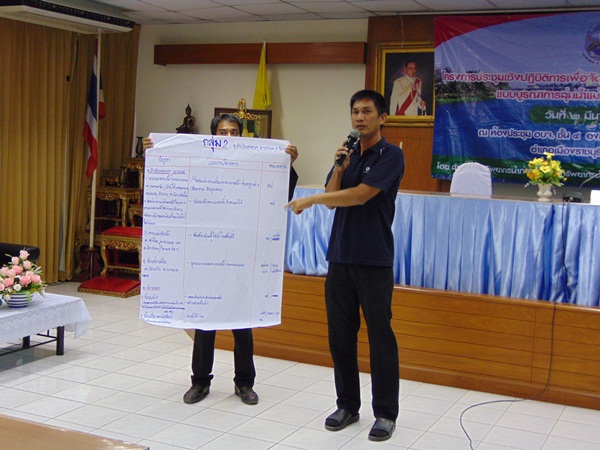 โอกาสนี้ นางฉลวย ธาราแสง ตำแหน่งนักวิเคราะห์นโยบายและแผนชำนาญการ ชี้แจงเสริมสร้างความรู้ “ศักยภาพลุ่มน้ำแม่กลอง” และประเด็นยุทธศาสตร์การบริหารจัดการทรัพยากรน้ำ ของประเทศ พ.ศ.๒๕๕๘-๒๕๖๙ เชื่อมโยงกับการจัดทำแผนบริหารจัดการทรัพยากรน้ำแบบบูรณาการลุ่มน้ำแม่กลอง ต่อด้วยแบ่งกลุ่มระดมสมองทบทวนปัญหาอุปสรรคในแต่ละพื้นที่ เพื่อหาแนวทางแก้ไขให้สอดคล้องกับยุทธศาสตร์ฯ ที่เกี่ยวข้อง เพื่อแก้ไขปัญหา โดยมีผู้เข้าร่วมประชุมฯ ประกอบด้วย ผู้ทรงคุณวุฒิ ผู้แทนจากองค์กรปกครองส่วนท้องถิ่น ผู้ร่วมสังเกตการณ์ในพื้นที่จังหวัดราชบุรีรวมจำนวน ๖๕ คน