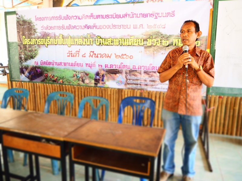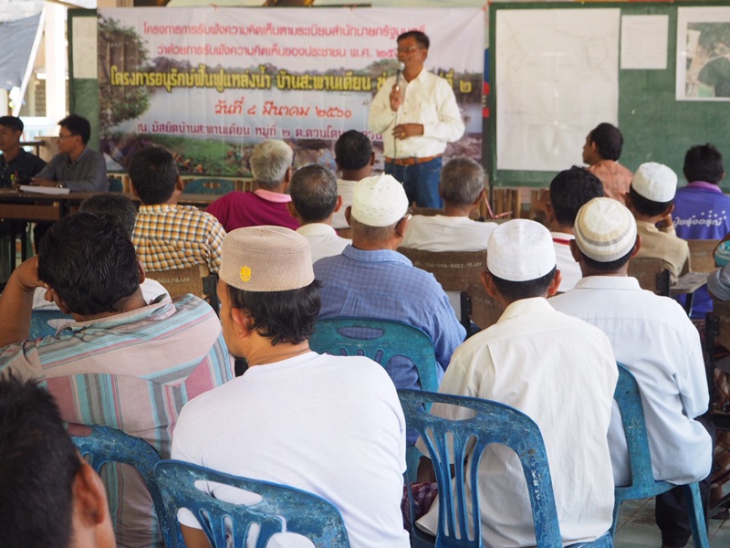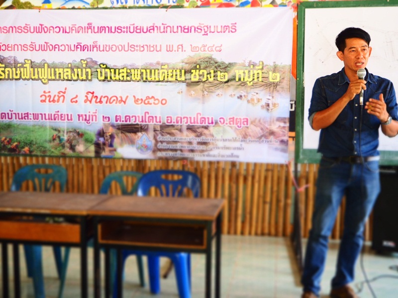 วันที่ 8 มีนาคม 2560 ส่วนประสานและบริหารจัดการลุ่มน้ำภาคใต้ฝั่งตะวันตกส่วนที่ 2 จัดโครงการการรับฟังความคิดเห็นตามระเบียบสำนักนายกรัฐมนตรีว่าด้วยการรับฟังความคิดเห็นของประชาชน พ.ศ. 2548 โครงการอนุรักษ์ฟื้นฟูแหล่งน้ำบ้านสะพานเคียน ช่วง 2 หมู่ที่ 2 ณ มัสยิดบ้านสะพานเคียน หมู่ที่ 2 ตำบลควนโดน อำเภอควนโดน จังหวัดสตูล มีประชาชน/ผู้มีส่วนได้ส่วนเสีย /ส่วนราชการเข้าร่วมโครงการจำนวน 70 คน เพื่อให้มีการดำเนินการตามระเบียบสำนักนายกรัฐมนตรีว่าด้วยการรับฟังความคิดเห็นของประชาชน พ.ศ.2548 ในการที่จะให้ประชาชนรับทราบและมีความเข้าใจที่ถูกต้องเกี่ยวกับการดำเนินโครงการของกรมทรัพยากรน้ำ โดยผ่านกระบวนการมีส่วนร่วมจากทุกภาคส่วน