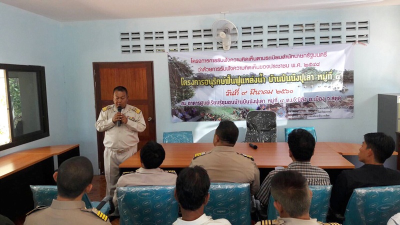 วันที่ 9 มีนาคม 2560 ส่วนประสานและบริหารจัดการลุ่มน้ำภาคใต้ฝั่งตะวันตกส่วนที่ 2 จัดโครงการการรับฟังความคิดเห็นตามระเบียบสำนักนายกรัฐมนตรีว่าด้วยการรับฟังความคิดเห็นของประชาชน พ.ศ. 2548 โครงการอนุรักษ์ฟื้นฟูแหล่งน้ำบ้านบันนังปุเลา หมู่ที่ 4 ณ อาคารศูนย์เรียนรู้ชุมชนบ้านบันนังปุเลา หมู่ที่ 4 ตำบลเจ๊ะบิลัง อำเภอเมือง จังหวัดสตูล มีประชาชน/ผู้มีส่วนได้ส่วนเสีย /ส่วนราชการเข้าร่วมโครงการจำนวน 80 คน เพื่อให้มีการดำเนินการตามระเบียบสำนักนายกรัฐมนตรีว่าด้วยการรับฟังความคิดเห็นของประชาชน พ.ศ.2548 ในการที่จะให้ประชาชนรับทราบและมีความเข้าใจที่ถูกต้องเกี่ยวกับการดำเนินโครงการของกรมทรัพยากรน้ำ โดยผ่านกระบวนการมีส่วนร่วมจากทุกภาคส่วน