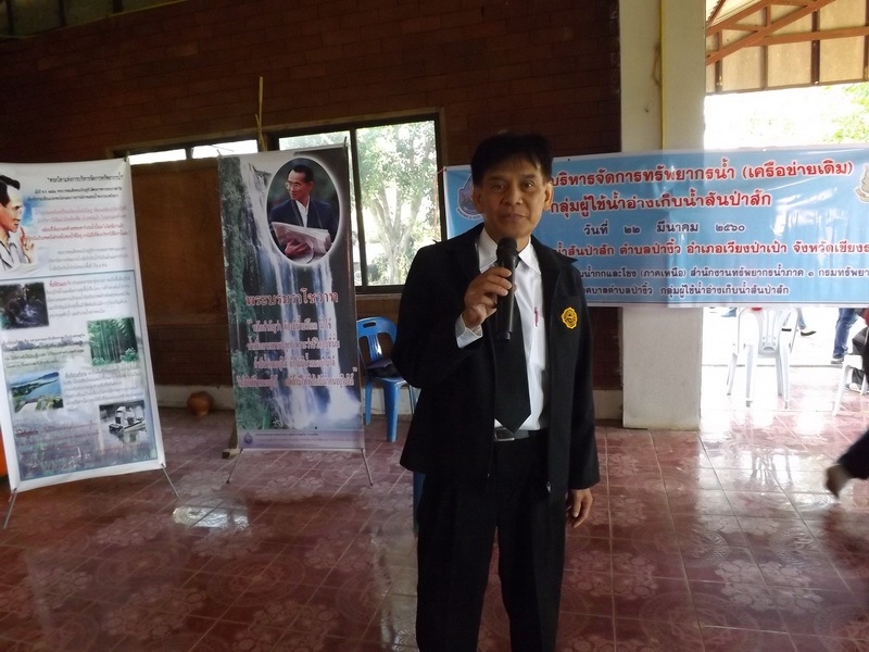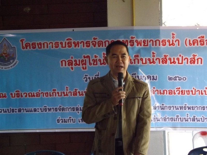 วันที่ 22 มีนาคม 2560 สำนักงานทรัพยากรน้ำภาค 1 โดยส่วนประสานและบริหารจัดการลุ่มน้ำกกและโขง (ภาคเหนือ) ดำเนินงานโครงการบริหารจัดการทรัพยากรน้ำกลุ่มผู้ใช้น้ำอ่างเก็บน้ำสันป่าสัก (เครือข่ายเดิม) ณ บริเวณอ่างเก็บน้ำสันป่าสัก ตำบลป่างิ้ว อำเภอเวียงป่าเป้า จังหวัดเชียงราย โดยได้รับเกียรติจาก ว่าที่ร้อยโท ดร.พงษ์ กุณรา ปลัดอาวุโสอำเภอเวียงป่าเป้า เป็นประธานเปิดงาน มีผู้เข้าร่วมกิจกรรมประกอบด้วย กลุ่มผู้ใช้น้ำอ่างเก็บน้ำสันป่าสัก, คณะผู้บริหารและเจ้าหน้าที่องค์การบริหารส่วนตำบลป่างิ้ว, คณะครูและนักเรียนโรงเรียนบ้านป่าสัก ผู้นำชุมชนและประชาชน ในพื้นที่ ประมาณ 100 คน