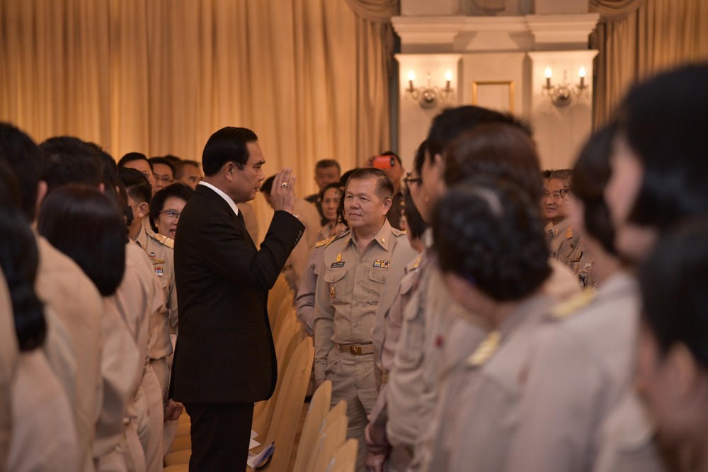 ในการนี้นายกรัฐมนตรีมอบโอวาทแก่ข้าราชการพลเรือนดีเด่น ประจำปี 2559ไว้ว่า "...คำว่าข้าราชการถือเป็นคำที่สำคัญ เป็นความภาคภูมิใจ เป็นเกียรติยศแก่ตนเองและครอบครัว ขอให้ทุกคนทำหน้าที่ของตนให้ดีที่สุด ทำงานเพื่อประชาชน ปัจจุบันประเทศไทยจำเป็นต้องมีการพัฒนาระบบราชการ เป็นยุคของการปฏิรูป และผู้นำของการเปลี่ยนแปลงคือข้าราการ เราจึงต้องปรับตัว สร้างบุคลากรยุคใหม่ที่มีคุณภาพ นับเป็นความท้าทายที่เราต้องร่วมมือกันพัฒนา รัฐบาลพร้อมสนับสนุนให้เกิดความยั่งยืน มีการน้อมนำแนวพระราชดำรัสพระบาทสมเด็จพระปรมินทรมหาภูมิพลอดุลยเดช มาปรับใช้ตั้งแต่อดีต ปัจจุบัน เรื่อยไปจนถึงอนาคต ลดความขัดแย้งของข้าราชการและประชาชน ทำให้บ้านเมืองมีความสงบสุข การขับเคลื่อนประเทศไทยไปสู่การเป็นประเทศไทย 4.0 ต้องสร้างความเข้าใจกับสังคมด้วยข้อเท็จจริง เหตุผล ไม่ใช่อารมณ์และอำนาจ หลายเรื่องเป็นปัญหาที่เกิดซ้ำซากการแก้ปัญหาจึงต้องแก้ให้ได้อย่างยั่งยืน..."