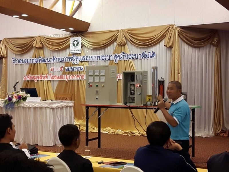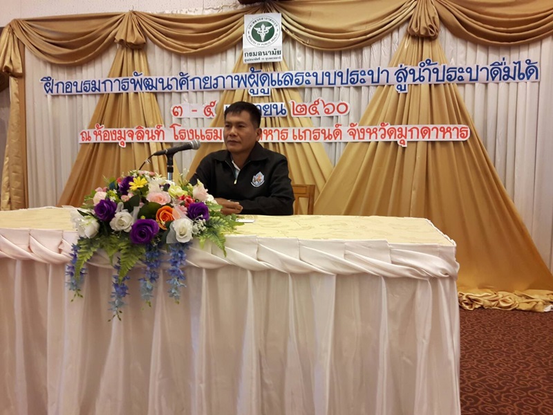 ในระหว่างวันที่ 3 - 5 เมษายน 2560 สำนักงานทรัพยากรน้ำภาค 11 มอบหมายให้เจ้าหน้าที่ส่วนวิชาการ เข้าร่วมเป็นวิทยากรอบรมให้ความรู้ ในหัวข้อรูปแบบและกระบวนการผลิตน้ำประปา เครื่องกลกับระบบน้ำประปา การพัฒนาคุณภาพน้ำสู่มาตรฐานน้ำบริโภค การพัฒนาระบบประปาองค์กรปกครองส่วนท้องถิ่น ณ โรงแรมมุกดาหาร แกรนด์ อำเภอเมืองมุกดาหาร จังหวัดมุกดาหาร ภายใต้โครงการฝึกอบรมการพัฒนาศักยภาพผู้ดูแลระบบประปา สู่น้ำประปาดื่มได้ การศึกษาดูงานที่ระบบประปาที่บ้านหนองหล่ม ตำบลโพธิ์ไทร อำเภอดอนตาล จังหวัดมุกดาหาร มีผู้เข้าอบรมจากองค์กรปกครองส่วนท้องถิ่น โรงพยาบาล สาธารณสุขอำเภอ สถาบันการศึกษา จากจังหวัดศรีสะเกษ อุบลราชธานี ยโสธร อำนาจเจริญ มุกดาหาร และจังหวัดกาฬสินธุ์ จำนวน 76 คน จัดอบรมโดยศูนย์อนามัยที่ 10 อุบลราชธานี