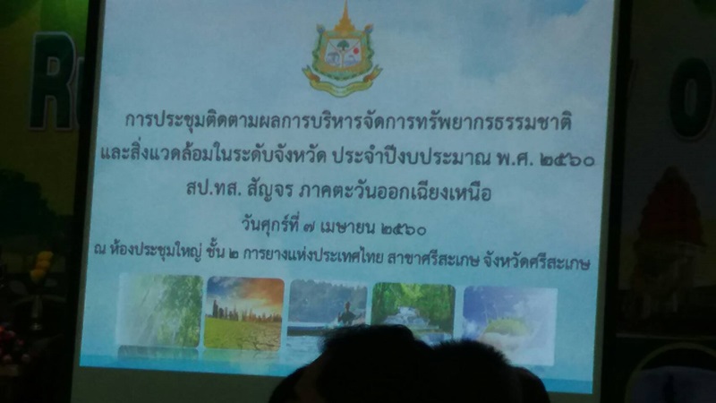 เมื่อวันที่ 7 เมษายน 2560 นายเดชา สินเติม นักวิเคราะห์นโยบายและแผนชำนาญการพิเศษ รักษาการผู้อำนวยการสำนักงานทรัพยากรน้ำภาค 11 ร่วมประชุมติดตามผลการบริหารจัดการทรัพยากรธรรมชาติและสิ่งแวดล้อมในระดับจังหวัด ประจำปีงบประมาณ พ.ศ.2560 สป.ทส.สัญจร ภาคตะวันออกเฉียงเหนือ ณ ห้องประชุมใหญ่ ชั้น 2 การยางแห่งประเทศไทย สาขาศรีสะเกษ จังหวัดศรีสะเกษ โดยมีผู้เข้าร่วมจากสำนักงานสิ่งแวดล้อมภาค สำนักงานทรัพยากรธรรมชาติและสิ่งแวดล้อมจังหวัด และหน่วยงานของ ทส.ที่เกี่ยวข้อง เป็นต้น
