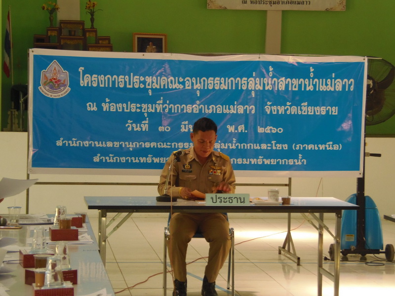 อำเภอแม่ลาว จังหวัดเชียงราย โดยมีนายคฑาสิทธิ์ เนื่องหล้า นายอำเภอแม่ลาว เป็นประธานการประชุมฯ มีคณะอนุกรรมการลุ่มน้ำสาขาน้ำแม่ลาวเข้าร่วมประชุม จำนวน ๗๗ คน