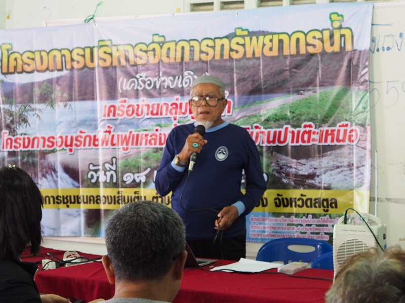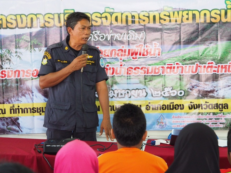 วันที่ 18 เมษายน 2560 สำนักงานทรัพยากรน้ำภาค 8 โดยส่วนประสานและบริหารจัดการลุ่มน้ำภาคใต้ฝั่งตะวันตกส่วนที่ 2 ดำเนินการจัดโครงการบริหารจัดการทรัพยากรน้ำ (เครือข่ายเดิม) เครือข่ายกลุ่มผู้ใช้น้ำโครงการอนุรักษ์ฟื้นฟูแหล่งน้ำธรรมชาติบ้านปาเต๊ะเหนือ ณ ที่ทำการชุมชนคลองเส็นเต็น ตำบลคลองขุด อำเภอเมือง จังหวัดสตูล โดยนายพรชัย ภู่สกุล รองนายกเทศมนตรีเมืองสตูล เป็นประธานเปิดโครงการ ผู้เข้าร่วมโครงการประกอบด้วย ประชาชน เยาวชน ผู้มีส่วนได้ส่วนเสียในพื้นที่ สมาชิกกลุ่มเครือข่ายจำนวน 60 คน มีวัตถุประสงค์เพื่อสนับสนุนกลุ่มเครือข่ายให้มีการบริหารจัดการทรัพยากรน้ำ รวมทั้งเพิ่มความเข้มแข็งของกลุ่ม และสนับสนุนกิจกรรมการดำเนินงานของกลุ่มเครือข่ายอย่างต่อเนื่อง