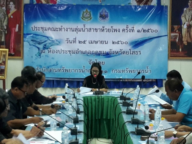 เมื่อวันอังคารที่ 25 เมษายน 2560 ส่วนประสานและบริหารจัดการลุ่มน้ำโขง ชี มูลตอนล่าง จัดประชุมคณะกรรมการลุ่มน้ำสาขาห้วยโพง ครั้งที่ 1/2560 โดยมีนางยุพิน ภัทรกุบพงษ์ ปลัดอาวุโสอำเภอกุดชุมเป็นประธานในการประชุม ณ ห้องประชุมอำเภอกุดชุม จังหวัดยโสธร ทั้งนี้มีวัตถุประสงค์เพื่อรายงานสถานการณ์น้ำในพื้นที่ลุ่มน้ำสาขา น้ำต้นทุนในอ่างเก็บน้ำในภาพรวม รายงานคุณภาพน้ำ แผนงานโครงการที่ได้รับการจัดสรรงบประมาณในปี 2560 จากหน่วยงานที่เกี่ยวข้องด้านทรัพยากรน้ำและสรุปกรอบยุทธศาสตร์การบริหารจัดการน้ำของลุ่มน้ำสาขาในพื้นที่จังหวัดยโสธร และขั้นตอนการจัดทำแผนปี 2562 ให้สอดคล้องกับยุทธศาสตร์การบริหารจัดการทรัพยากรน้ำของประเทศต่อไป