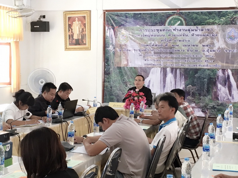เมื่อวันพฤหัสบดี ที่ 27 เมษายน 2560 เวลา 09.00 - 12.00 น. ส่วนประสานและบริหารจัดการลุ่มน้ำสาละวิน สำนักงานทรัพยากรน้ำภาค 1 ร่วมกับส่วนประสานและบริหารจัดการลุ่มน้ำแม่กลอง สำนักงานทรัพยากรน้ำภาค 7 ได้จัดประชุมคณะทำงานลุ่มน้ำสาขาแควใหญ่ตอนบน, ลุ่มน้ำสาขาห้วยแม่จัน และ ลุ่มน้ำสาขาห้วยแม่ละมุง ครั้งที่ 1/2560 ณ ห้องประชุมที่ว่าการอำเภออุ้มผาง ชั้น 2 จังหวัดตาก โดยมีนายประทีป โพธิ์เที้ยม นายอำเภออุ้มผาง เป็นประธานการประชุม และนายสมเดช วรรณก้อน นักวิเคราะห์นโยบายและแผนชำนาญการ รักษาราชการแทนผู้อำนวยส่วนประสานและบริหารจัดการลุ่มน้ำสาละวิน ทำหน้าที่เลขาฯ คณะทำงาน ผู้สังเกตการณ์ และเจ้าหน้าที่ส่วนประสานฯ เข้าร่วมประชุมจำนวน 45 คน