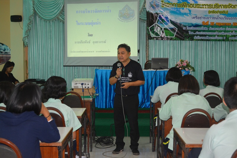 วันที่ 25 พฤษภาคม 2560 ส่วนประสานและบริหารจัดการลุ่มน้ำทะเลสาบสงขลา โดยนายสัมพันธ์ ดุลยาภรณ์ ผู้อำนวยการส่วนประสานและบริหารจัดการลุ่มน้ำทะเลสาบสงขลา พร้อมเจ้าหน้าที่จัดโครงการบริหารจัดการทรัพยากรน้ำ (เครือข่ายเดิม) เครือข่ายเยาวชนโรงเรียนธรรมโฆษิต ตำบลนาหม่อม อำเภอนาหม่อม จังหวัดสงขลา ณ โรงเรียนธรรมโฆษิต ตำบลนาหม่อม อำเภอนาหม่อม จังหวัดสงขลา ผู้เข้าร่วมโครงการประกอบด้วย กลุ่มเครือข่ายโรงเรียนธรรมโฆษิตจำนวนทั้งสิ้น 81 คน การจัดโครงการดังกล่าวมีการบรรยายให้ความรู้เรื่องการบริหารจัดการทรัพยากรน้ำ โดยนายสัมพันธ์ ดุลยาภรณ์ ผู้อำนวยการส่วนประสานและบริหารจัดการลุ่มน้ำทะเลสาบสงขลา , ระบบเตือนภัยล่วงหน้า (Early Warning) โดยนายธีระนนท์ ศรีเกื้อ นักอุทกวิทยาปฏิบัติงาน และเจ้าหน้าที่จากส่วนอุทกวิทยา สำนักงานทรัพยากรน้ำภาค 8 , แบ่งกลุ่มระดมความคิดเห็น การแก้ไขปัญหาทรัพยากรธรรมชาติและสิ่งแวดล้อมในพื้นที่และการอนุรักษ์ทรัพยากรน้ำ โดยเจ้าหน้าที่ส่วนประสานและบริหารจัดการลุ่มน้ำทะเลสาบสงขลา