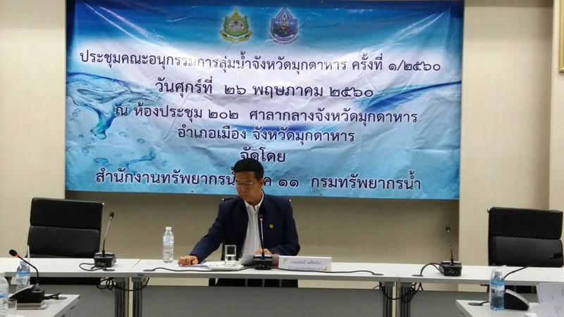 เมื่อวันที่ 26 พฤษภาคม 2560 ส่วนประสานและบริหารจัดการลุ่มน้ำโขง ชี มูลตอนล่าง สำนักงานทรัพยากรน้ำภาค 11 จัดประชุมคณะอนุกรรมการลุ่มน้ำจังหวัดมุกดาหาร ครั้งที่ 1/2560 โดยได้รับเกียรติจากนายสรสิทธิ์ ฤทธิ์สรไกร ผู้ว่าราชการจังหวัดมุกดาหาร ให้เกียรติเป็นประธาน ณ ห้องประชุม 202 ศาลากลางจังหวัดมุกดาหาร ทั้งนี้มีวัตถุประสงค์เพื่อรายงานสถานการณ์ภัยแล้ง ในพื้นที่ลุ่มน้ำจังหวัดอุบลราชธานี รายงานสภาพภูมิอากาศ น้ำต้นทุนในอ่างเก็บน้ำในภาพรวม รายงานคุณภาพน้ำ แผนงานโครงการที่ได้รับจัดสรรงบประมาณในปี 2561 จากหน่วยงานที่เกี่ยวข้องกับงานด้านทรัพยากรน้ำ และสรุปกรอบยุทธศาสตร์การบริหารจัดการน้ำของจังหวัดศรีสะเกษ ให้สอดคล้องกับยุทธศาสตร์การบริหารจัดการทรัพยากรน้ำของประเทศต่อไป