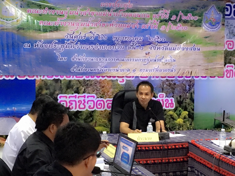 วันศุกร์ ที่ 26 พฤษภาคม 2560 เวลา 10.00 - 12.00 น. ส่วนประสานและบริหารจัดการลุ่มน้ำสาละวิน สำนักงานทรัพยากรน้ำภาค 1 ได้จัดประชุมคณะทำงานลุ่มน้ำสาขาแม่น้ำปายตอนบน และ คณะทำงานลุ่มน้ำสาขาห้วยแม่สา ครั้งที่ 1/2560 ณ ห้องประชุมที่ว่าการอำเภอปาย ชั้น 2 อ.ปาย จ.แม่ฮ่องสอน โดยมี นายธันย์ปวัฒน์ ภูริวัฒนเมธา ปลัดอาวุโสอำเภอปาย แทน นายอำเภอปาย ประธานคณะทำงานลุ่มน้ำสาขาฯ ให้เกียรติเป็นประธานการประชุม และนายสมเดช วรรณก้อน นักวิเคราะห์นโยบายและแผนชำนาญการ รักษาราชการแทนผู้อำนวยส่วนประสานและบริหารจัดการลุ่มน้ำสาละวิน ทำหน้าที่เลขาฯ โดยมีคณะทำงาน ผู้สังเกตการณ์ และเจ้าหน้าที่ส่วนประสานฯ เข้าร่วมประชุมจำนวน 30 คน
