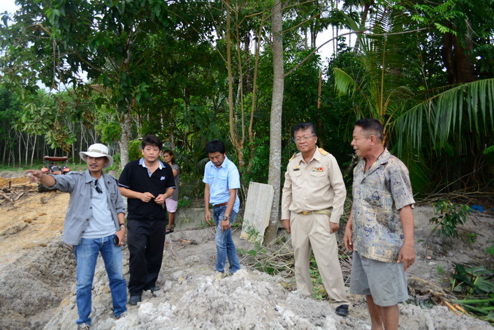 วันนี้ (5 มิถุนายน 2560) นายธีระพร วีนะสนธิ ผู้อำนวยการสำนักงานทรัพยากรน้ำภาค 10 พร้อมด้วยนายสุธวัช เลิศวาสนา วิศวกรโยธาชำนาญการ ปฏิบัติหน้าที่แทน ผู้อำนวยการส่วนพัฒนาฟื้นฟูแหล่งน้ำ และผู้ควบคุมงาน ลงพื้นที่โครงการอนุรักษ์ฟื้นฟูแหล่งน้ำหนองห้วยใหญ่ ม.1 ต.บ้านนา อ.บ้านนาเดิม จ.สุราษฎร์ธานี เพื่อติดตามความก้าวหน้า และตรวจสอบ แก้ไขปัญหาให้กับราษฎรที่มีแนวเขตก่อสร้างติดกับเขตพื้นที่ก่อสร้าง เนื่องจากได้รับผลกระทบจากการก่อสร้าง ซึ่งเกรงว่า เมื่อถึงฤดูน้ำหลาก น้ำอาจเซาะเข้ามาในพื้นที่ ทำให้เกิดความเสียหายกับบ้านเรือนที่อยู่อาศัยได้ จึงขอให้มีการวางท่อ คสล.และปรับแต่งพื้นที่บริเวณนั้นให้มั่นคงแข็งแรง โดยสรุปเบื้องต้น ผู้รับจ้างรับจะวางท่อ คสล. และปรับพื้นที่ให้มั่นคงแข็งแรง เพื่อแก้ไขปัญหาความเดือดร้อน ซึ่งเป็นที่พอใจของชาวบ้าน อนึ่ง โครงการดังกล่าว เป็นโครงการปีงบประมาณ 2559 ขณะนี้อยู่ระหว่างดำเนินการก่อสร้าง ผลงานแล้วเสร็จ ประมาณ 70 % คาดว่าจะก่อสร้างแล้วเสร็จภายในเดือน กรกฎาคม 2560 ซึ่งเมื่อก่อสร้างแล้วเสร็จจะมีความจุน้ำ 479,900 ลบม.ช่วยเหลือราษฎรมีน้ำสำหรับการอุปโภคและอุปโภคจำนวน 1,288 ครัวเรือน สนับสนุนพื้นที่การเพาะปลูกบริเวณรอบโครงการประมาณ 2,101 ไร่