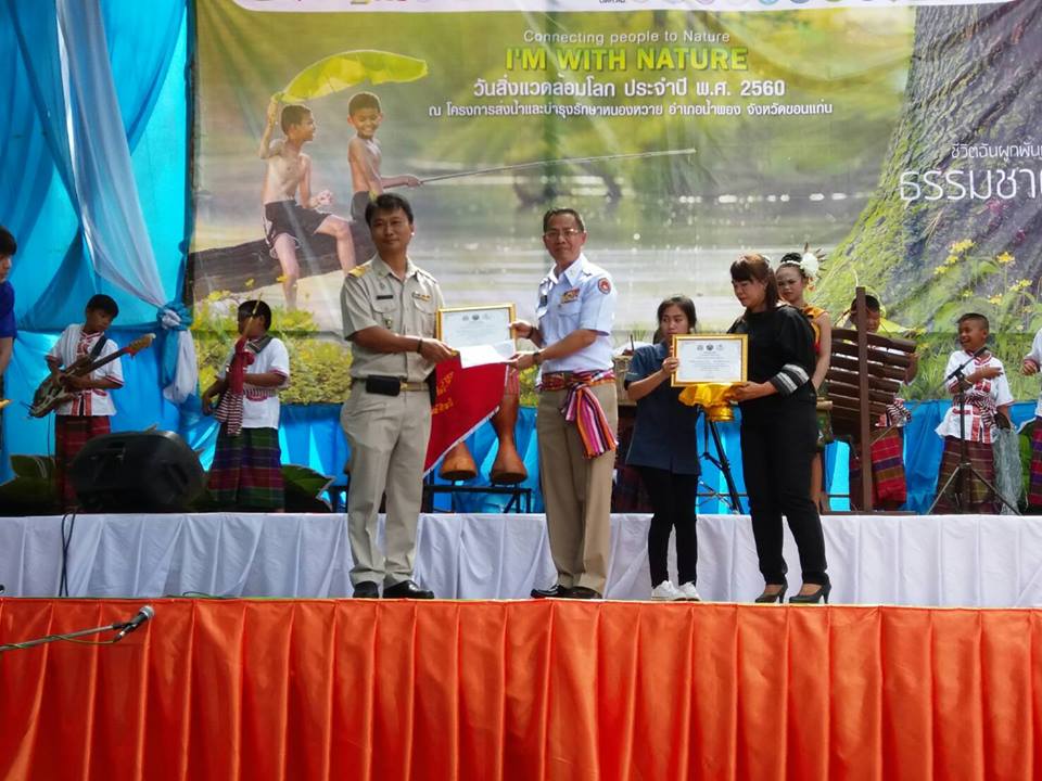 วันที่ 5 มิถุนายน 2560 นายกฤษณชัย เรืองจาบ ผู้อำนวยการส่วนบริหารจัดการน้ำ รักษาราชการแทน ผู้อำนวยการสำนักงานทรัพยากรน้ำภาค 4 มอบหมายให้นายจารุวัตร มะปะเต ผู้อำนวยการส่วนอำนวยการ ร่วมในกิจกรรมรณรงค์เนื่องในวันสิ่งแวดล้อมโลก "คืนน้ำใสให้น้ำพอง" ณ โครงการส่งน้ำและบำรุงรักษาหนองหวาย อำเภอน้ำพอง จังหวัดขอนแก่น จัดโดย อำเภอน้ำพองร่วมกับสำนักงานสิ่งแวดล้อมภาคที่ 10 ประชาคมรักษ์ลุ่มน้ำพอง และหน่วยงานในพื้นที่จังหวัดขอนแก่น ทั้งภาครัฐและเอกชน พร้อมนี้ สำนักงานทรัพยากรน้ำภาค 4 ได้ร่วมสนับสนุนงบประมาณในการจัดงาน จำนวนเงิน 5,500 บาท ในการจัดงานครั้งนี้ มีวัตถุประสงค์เพื่อรณรงค์ ประชาสัมพันธ์ และสร้างการมีส่วนร่วมของทุกภาคส่วนในการขับเคลื่อนการจัดการสิ่งแวดล้อมควบคู่กับการอนุรักษ์ทรัพยากรธรรมชาติ สอดรับกับคำขวัญที่ว่า "Connecting People to Nature : I' M WITH NATURE" มีภาษาไทยว่า "ชีวิตฉันผูกพันกับธรรมชาติ"